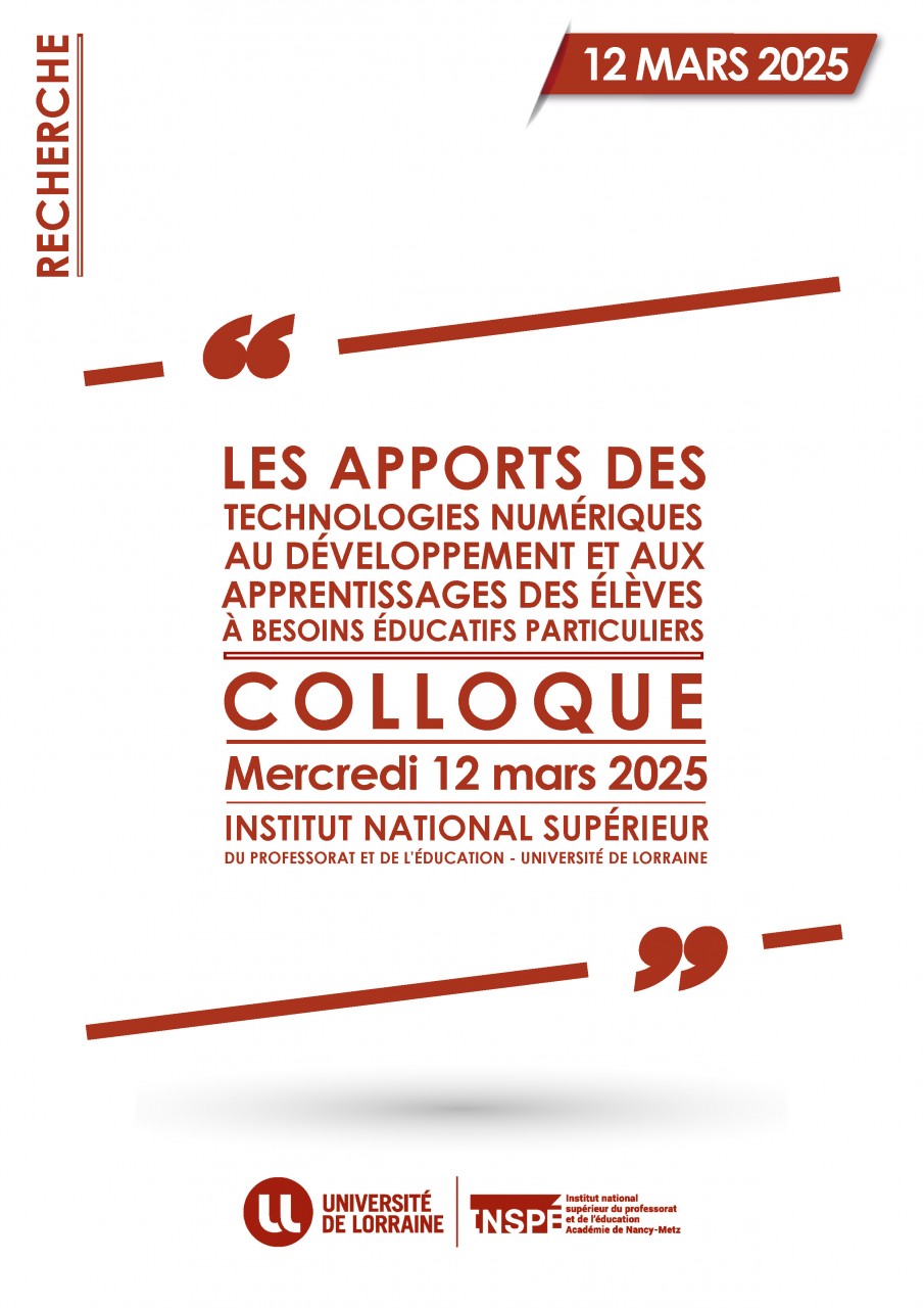 > en présentiel, à l’INSPÉ de Lorraine, campus de Maxéville : 5 rue Paul Richard 54320 MAXÉVILLE (Salle des conférences - Bât E, 2ème étage)