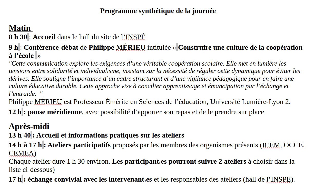 9 h : Conférence-débat de Philippe MERIEU intitulée « Construire une culture de la coopération à l’école »