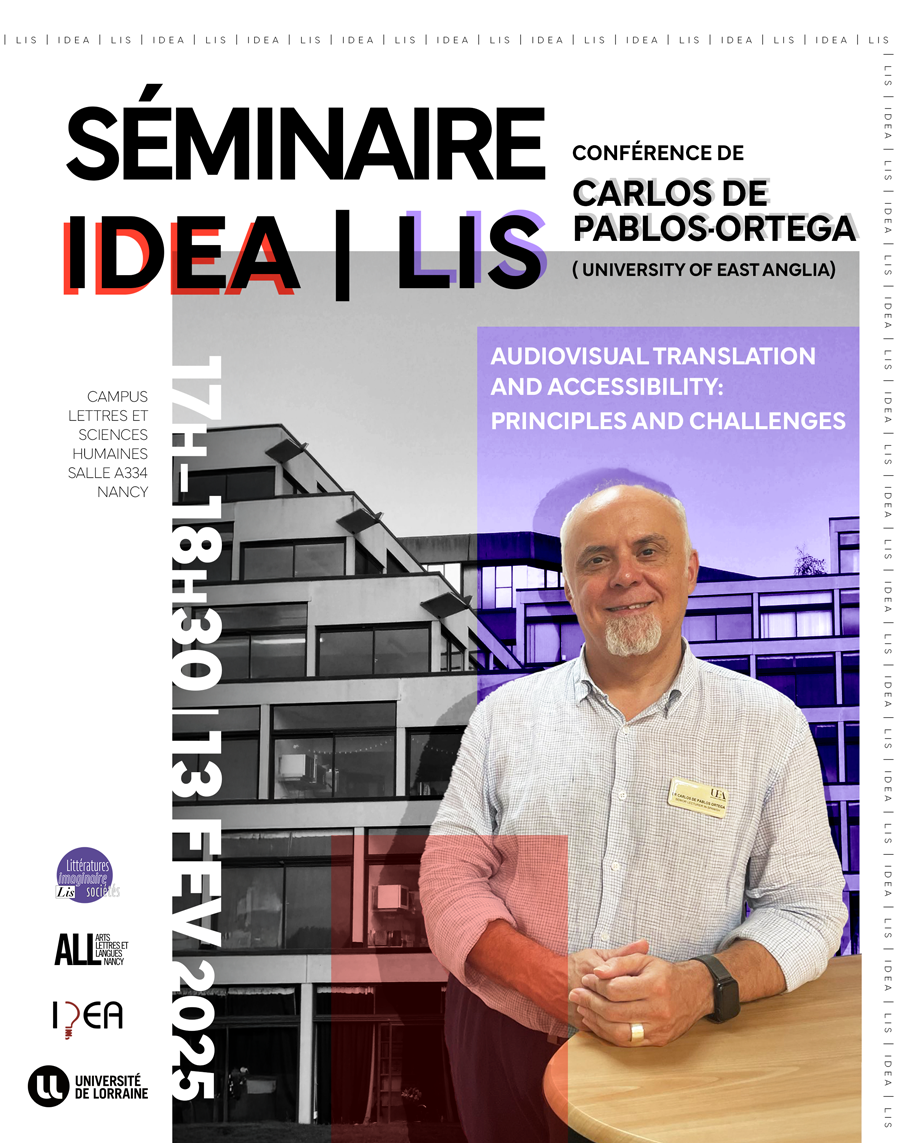 Le 13 février, le séminaire IDEA / LIS accueillera une conférence de Carlos de Pablos-Ortega (University of East Anglia) intitulée "Audiovisual Translation and Accessibility: Principles and Challenges".