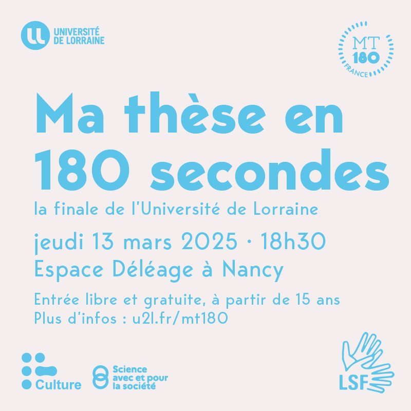 Le rendez-vous est donné. Jeudi 13 mars 2025 à 18h30, les 11 doctorant·e·s finalistes de l’Université de Lorraine au concours Ma thèse en 180 secondes monteront sur la scène de l’Espace Déléage pour partager leurs recherches avec le public.