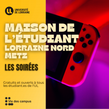 Universit'E-Sport te propose une soirée jeux-vidéo à la MDE à Metz. Au programme : des jeux, des jeux et des jeux (et de la bonne ambiance).