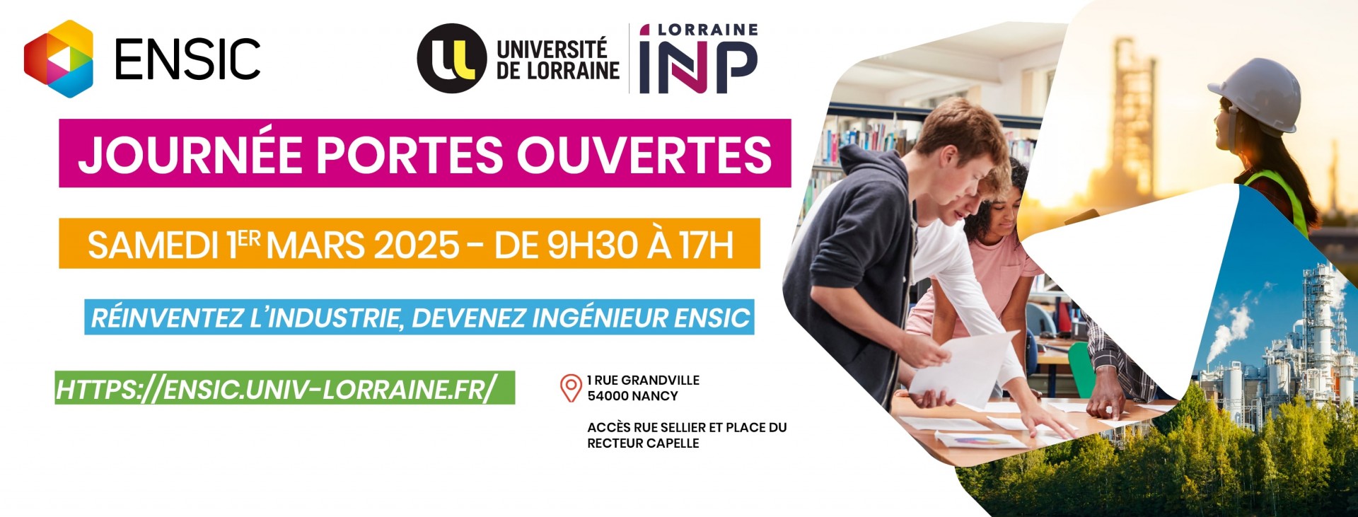 Le samedi 1er mars 2025, l'ENSIC ouvrira ses portes aux étudiants et à leurs familles, et plus spécifiquement aux lycéens et aux étudiants de niveau Bac+2 (classes préparatoires, BUT, Licences, BTS). En tant que visiteur, vous pourrez notamment échanger avec les étudiants et les enseignants de l'École qui apporteront leurs témoignages sur les différents cursus.