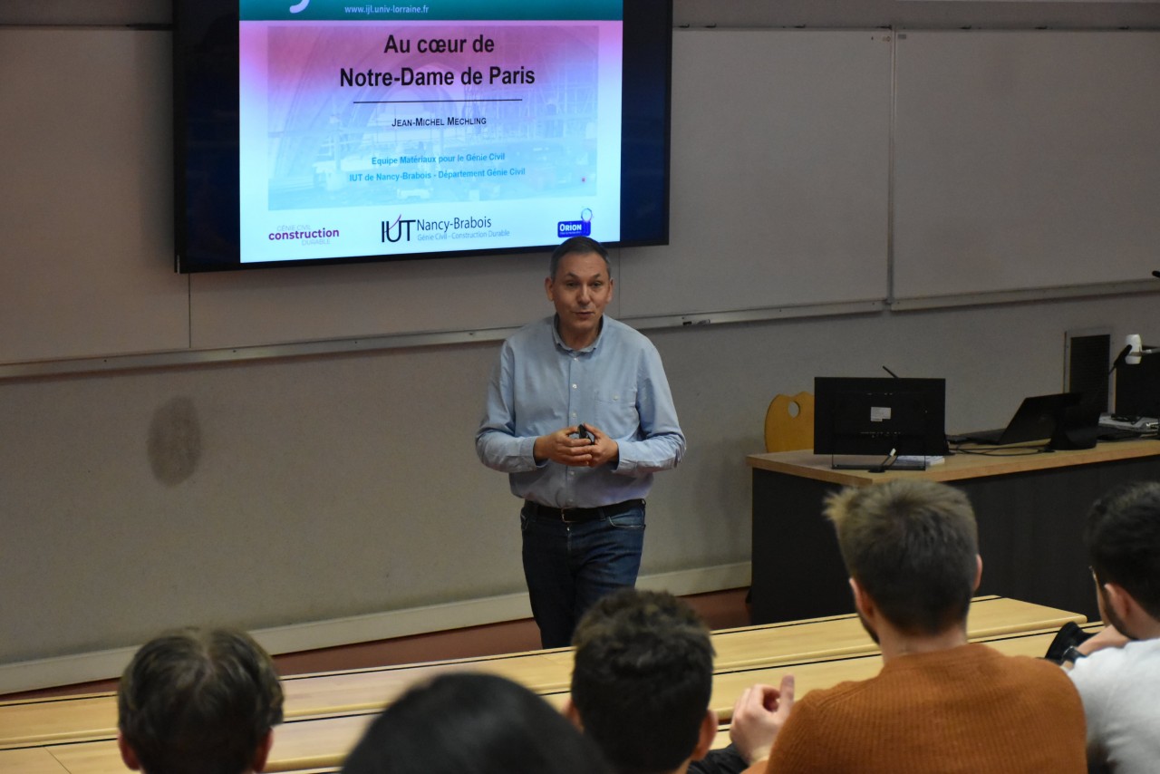 Le 13 février dernier, l’IUT Nancy-Brabois a eu le plaisir d’accueillir une conférence inédite animée par le Pr. Jean-Michel MECHLING sur ses travaux de recherche autour des mortiers, offrant ainsi aux étudiants une précieuse initiation à la recherche.