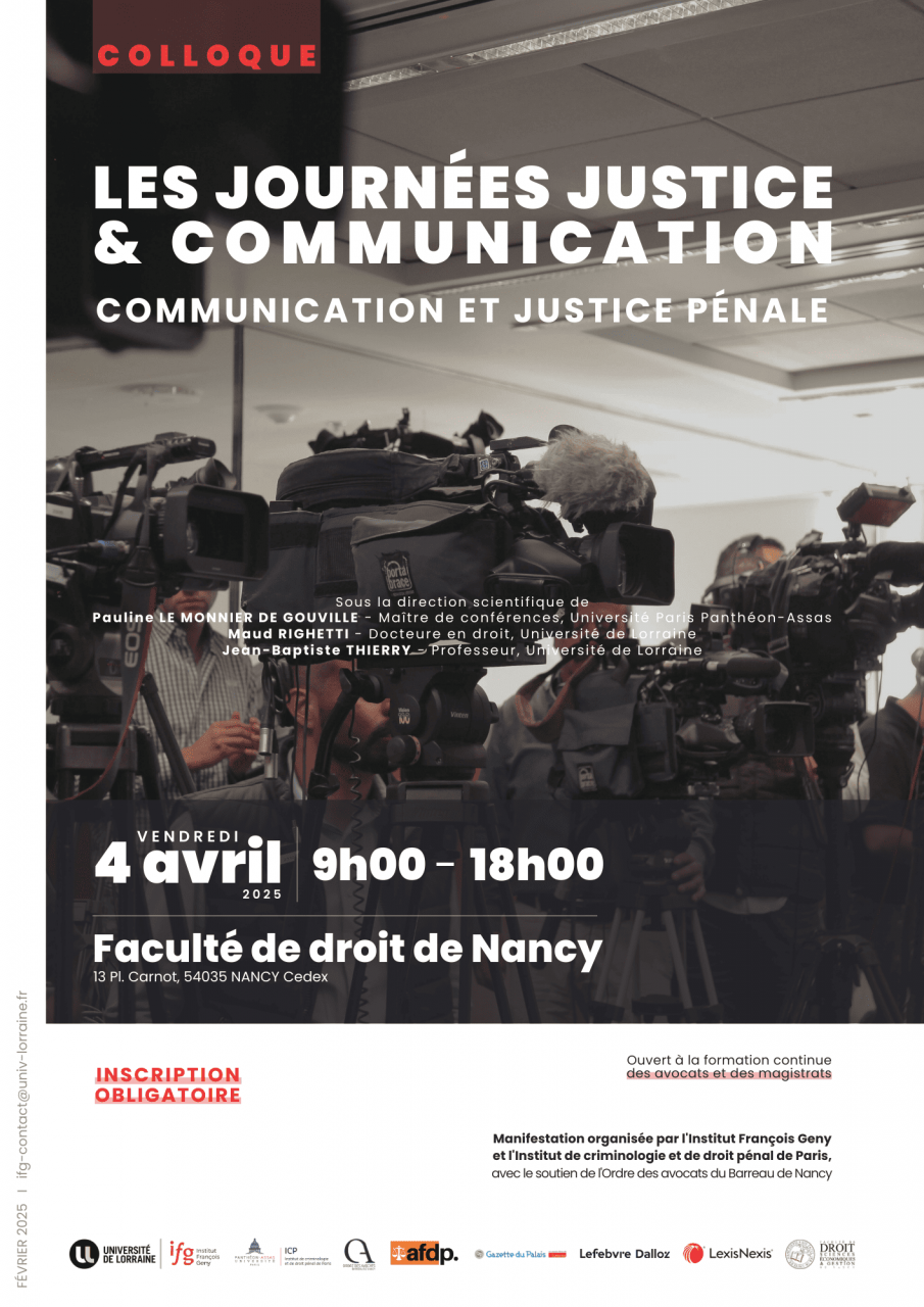 Manifestation organisée par l'Institut François Geny et l'Institut de criminologie et de droit pénal de Paris, avec le soutien de l'Ordre des avocats du Barreau de Nancy.