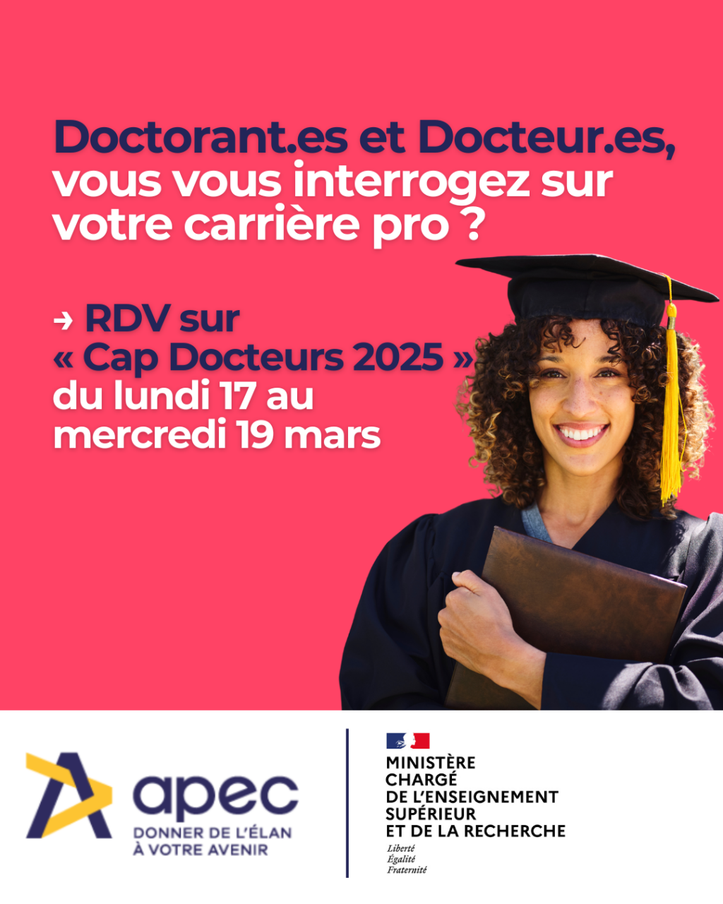 L’Apec et le Ministère chargé de l’enseignement supérieur et de la recherche, vous invitent à participer à six webconférences inspirantes sur la valorisation des compétences des docteurs dans le monde professionnel et la poursuite de carrière du 17 au 19 mars !