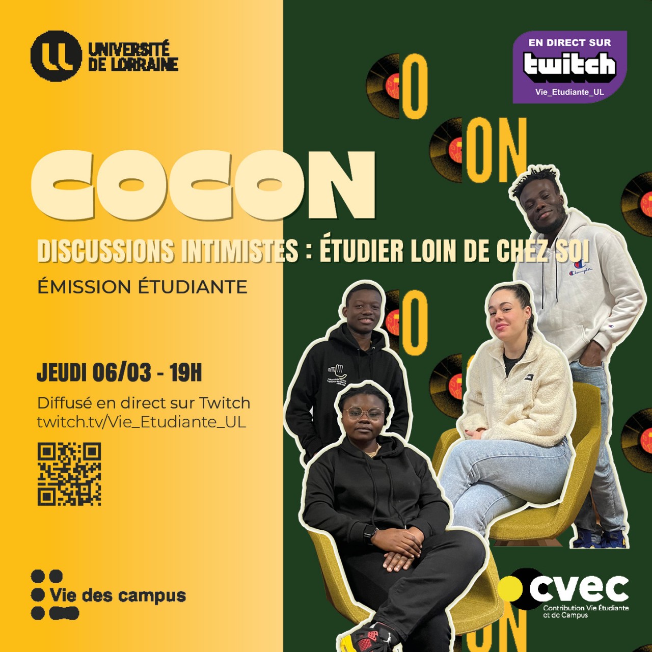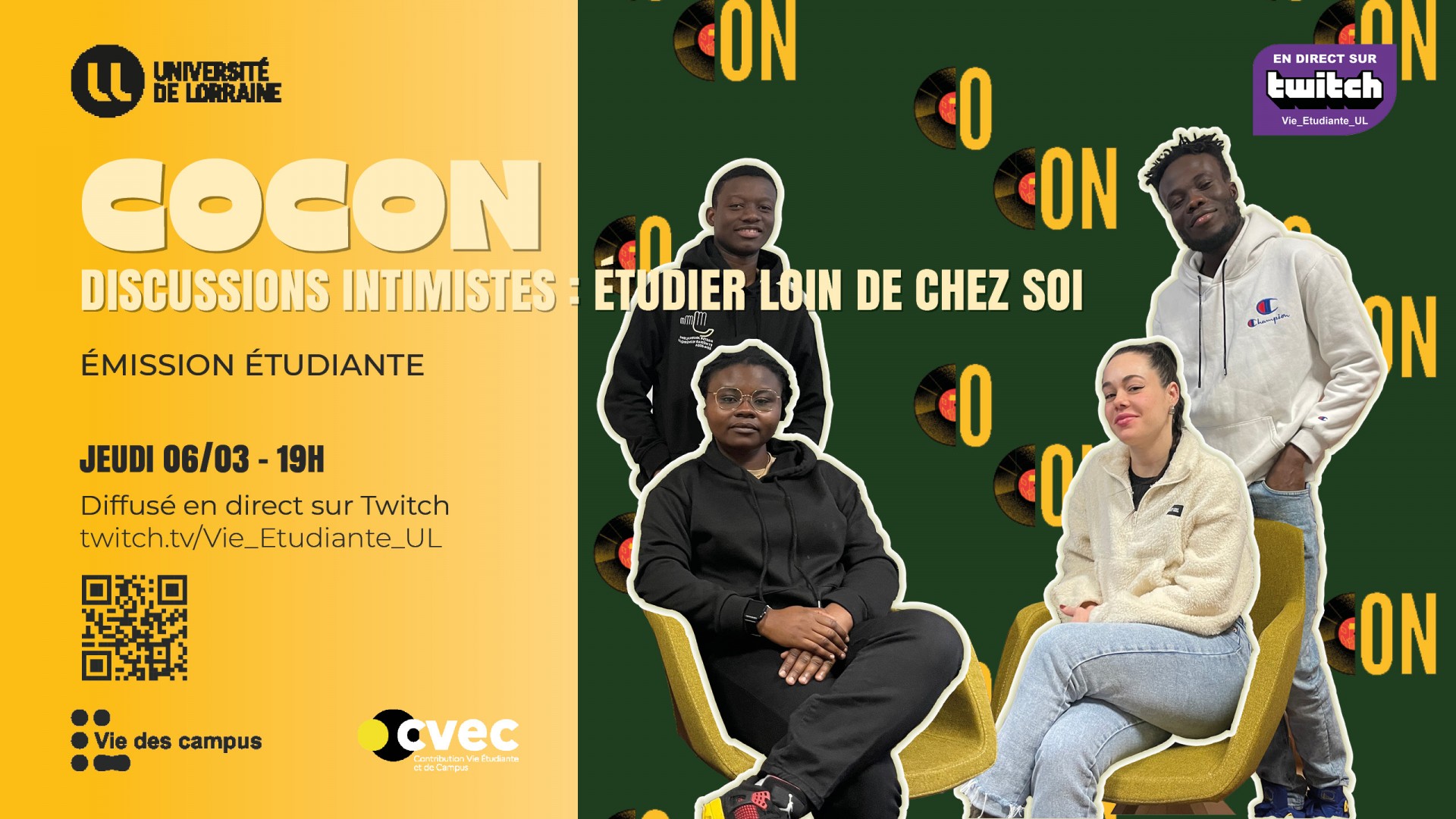 Cocon c'est une nouvelle émission étudiante qui aborde des sujet sincère qui touche ses intervenant-e-s. Découvre ce nouveau format jeudi 06 mars à 19h sur la chaîne Twitch Vie_Etudiante_UL.