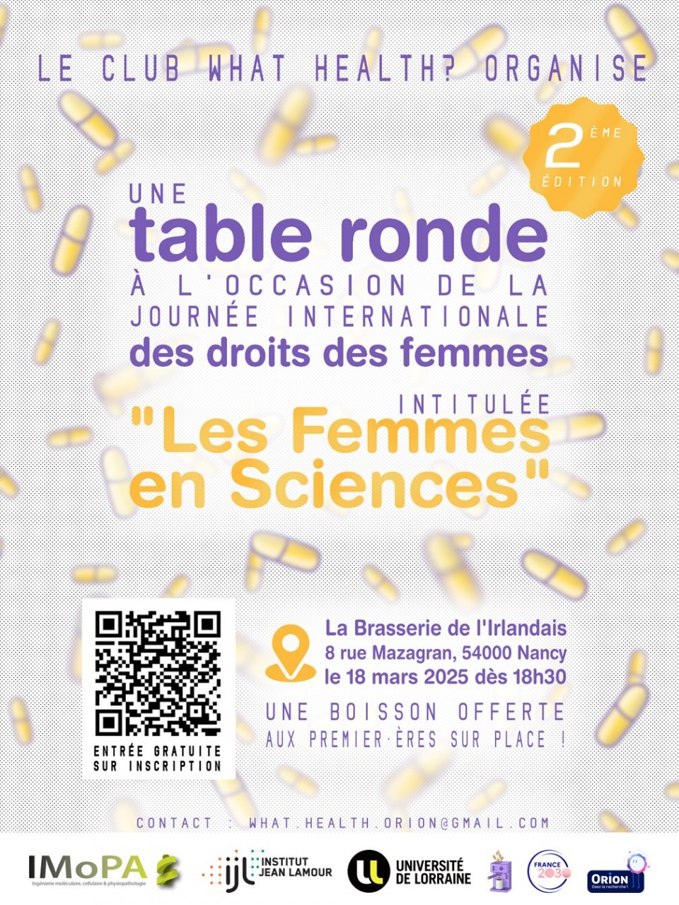 La science, souvent perçue comme un domaine dominé par les hommes, doit désormais sa progression à de nombreuses femmes qui bravent les obstacles et redéfinissent les frontières du possible. C'est dans cet esprit que What Health?, un club étudiant·es-chercheur·ses ORION, se mobilise pour mettre en lumière les femmes qui font avancer la recherche en Lorraine.