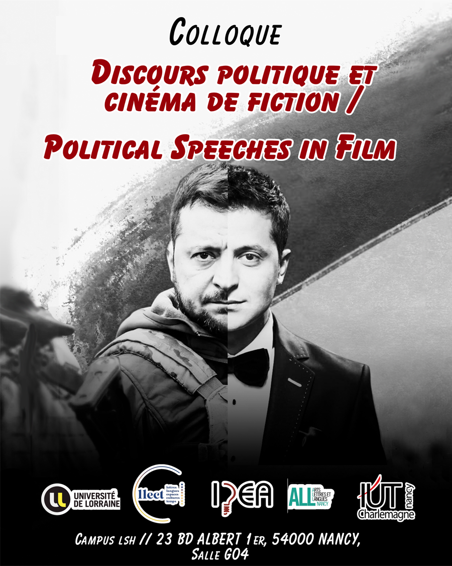Le colloque "Discours politique et cinéma de fiction" se tiendra les 17 et 18 mars, sur le Campus Lettres et Sciences Humaines à Nancy, salle G04.