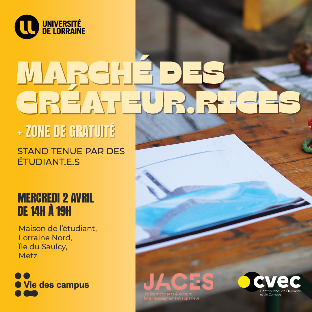 De nombreux étudiant.e.s seront présents afin de proposer un marché des créateur.rices 100% étudiant.e.s.