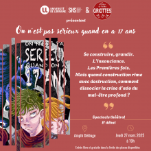 La Compagnie Les P'tites Griottes et le département de psychologie, avec le soutien de l'UFR SHS, vous convient à la représentation du spectacle théâtral "On n'est pas sérieux quand on a 17 ans".