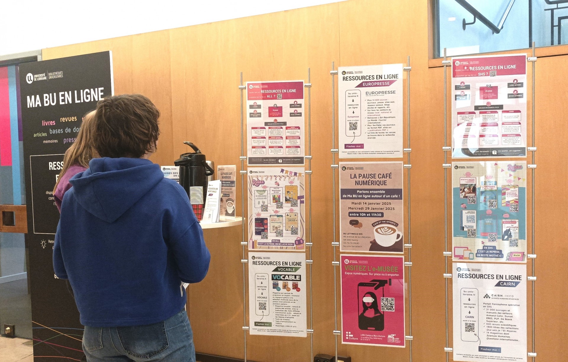 Les étudiants et étudiantes du Campus Lettres, Sciences Humaines et Sociales étaient invités à venir discuter des ressources en ligne avec deux bibliothécaires autour d’une boisson chaude offerte. Les rencontres avaient lieu dans le hall de la BU, devant l’espace « Ma BU en ligne », sur des créneaux d’1h30.