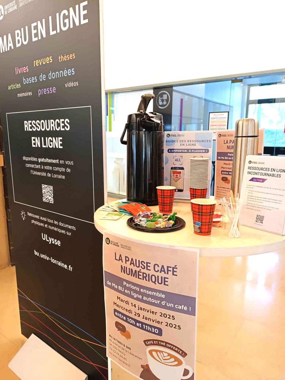 La BU Lettres, Sciences Humaines et Sociales de Nancy a organisé trois sessions de « Pause café numérique » en janvier et mars 2025.
