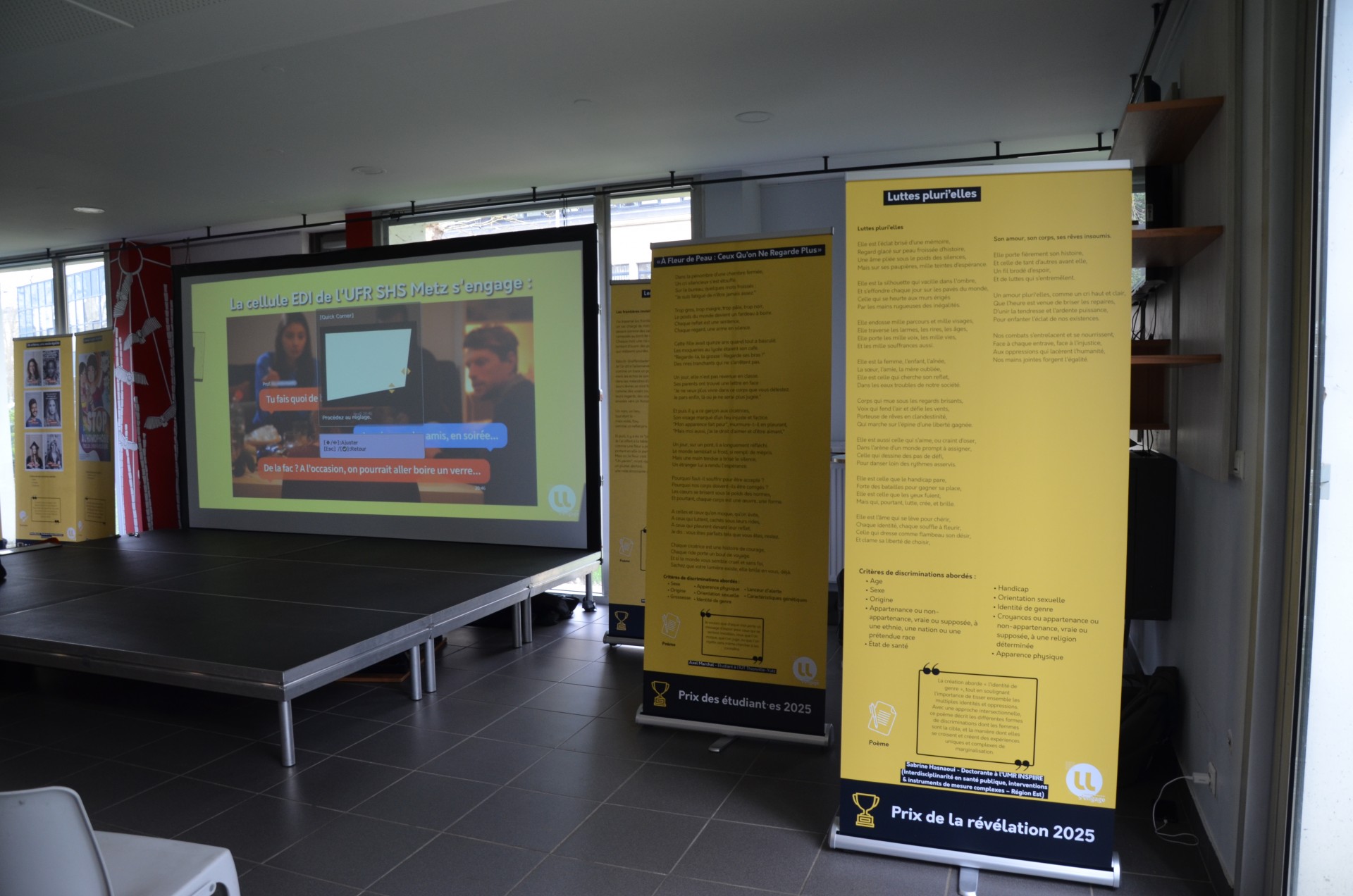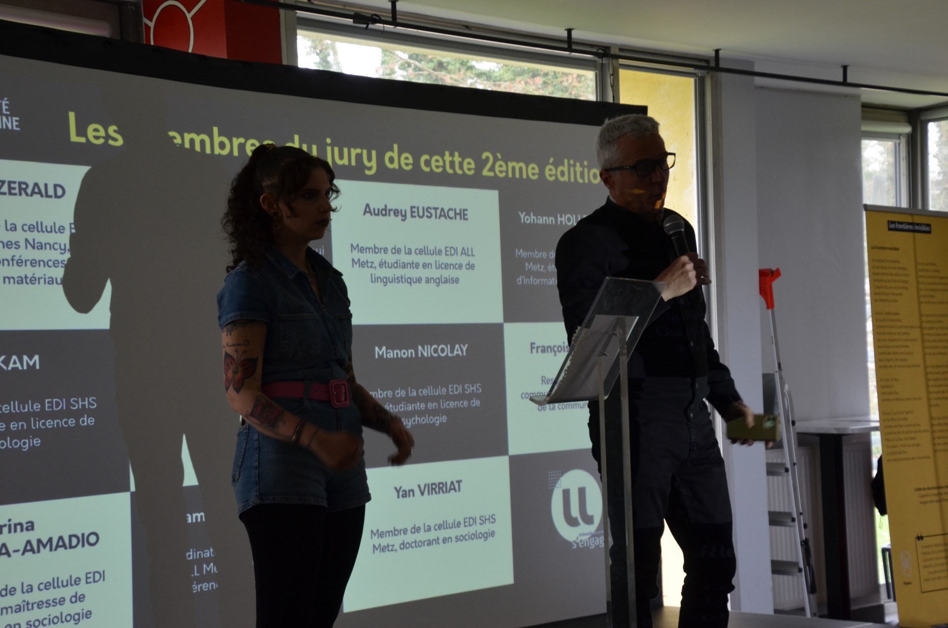 Le 21 mars à 14h, la Maison de l’Étudiant de Metz a vibré au rythme de la deuxième édition du Concours culturel contre les discriminations. Porté par la cellule Égalité, Diversité, Inclusion de l’UFR SHS-Metz et animé par Lison Hesse, doctorante en psychologie, cet événement a mis en lumière des œuvres engagées et inspirantes, proposés par des étudiants, des étudiantes et des membres du personnel de l’Université de Lorraine.