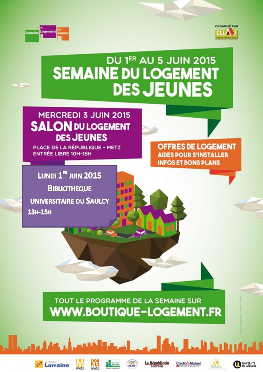 Le CLLAJ, partenaire du Service universitaire de médecine préventive et de promotion de la santé (Santé-Social), vous accueille lundi 1er juin 2015 de 13h à 17h à la BU du Saulcy et vous informe sur les offres de logement, les aides pour s'installer, infos et bons plans !