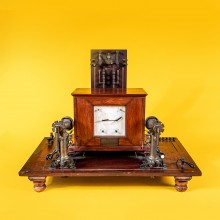 Ce récepteur télégraphique construit par Bréguet est hérité du système Chappe, qui date de la Révolution française. Il reproduit visuellement en miniature les deux bras articulés des sémaphores dont les changements de position permettent de transmettre des messages lettre à lettre codés. Ce télégraphe Bréguet fonctionne grâce à l’électricité. Ce type d’appareils est progressivement abandonné avec l’adoption du système Morse, pour la télégraphie sans fil.