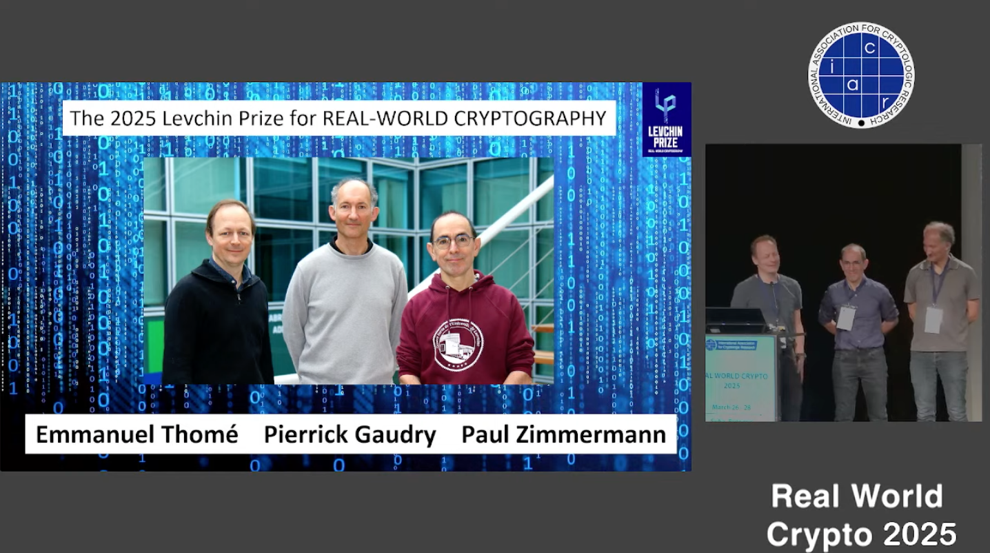 Le Prix Levchin honore des innovations à fort impact dans la cryptographie et son utilisation dans des systèmes du monde réel. Il leur a été remis le 26 mars lors de Real-World Crypto, conférence internationale majeure en cryptographie appliquée réunissant chaque année environ 600 professionnels académiques et industriels du domaine.
