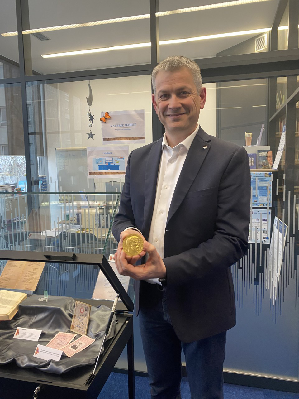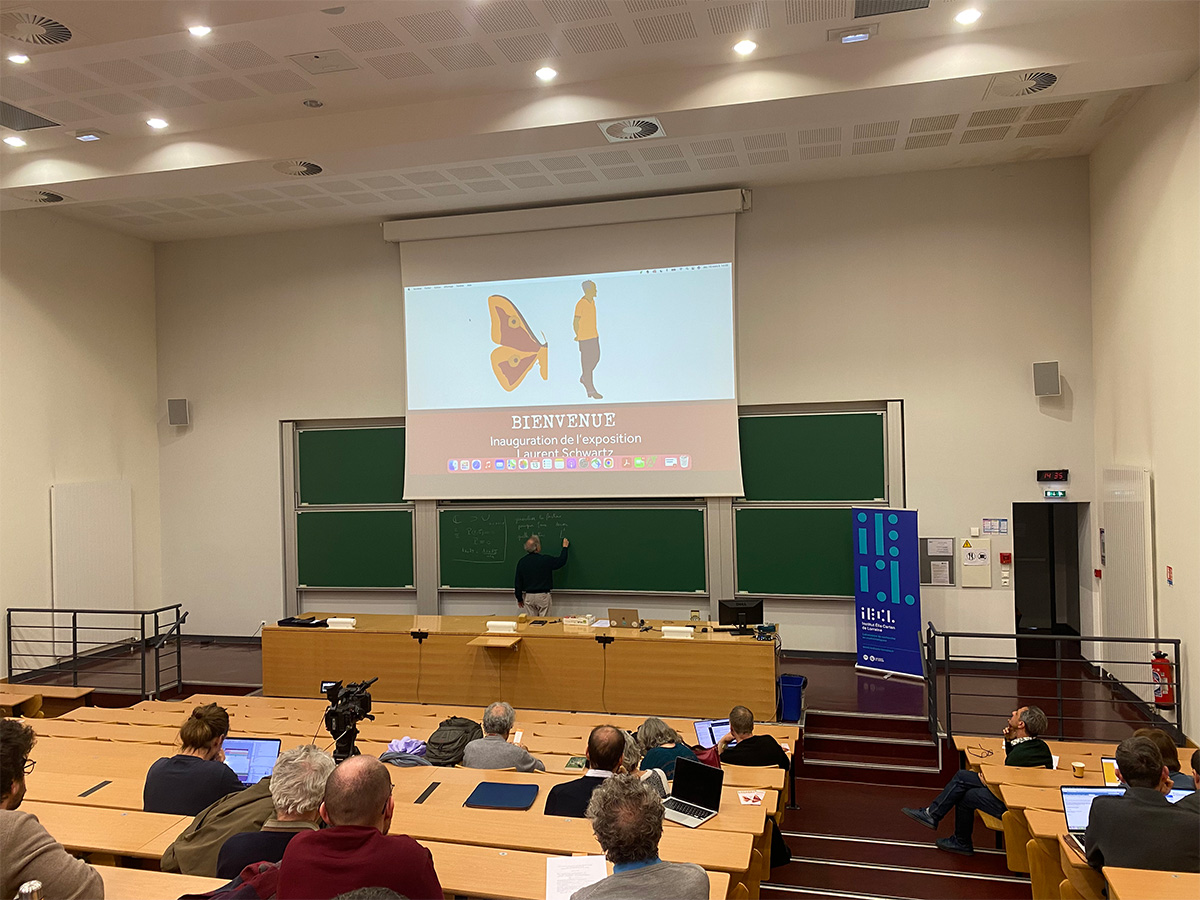 La veille, Christophe Besse, Directeur de CNRS Mathématiques, a dévoilé et déposé dans la vitrine d’exposition la Médaille Fields qui a été remise à Laurent Schwartz en 1950 lors du Congrès International des Mathématiciens à l’Université de Harvard. Anne Gégout-Petit, Directrice de l’IECL, a ouvert la journée par une citation de Laurent Schwartz qu’il a écrit dans ses mémoires : « J’ai toujours voulu “changer le monde”, changer la vie. Je suis resté un réformateur que toute structure défectueuse et sclérosée tracasse ». Reconnu comme un savant et un grand mathématicien, Laurent Schwartz était aussi un citoyen engagé dans ses combats contre l’injustice.