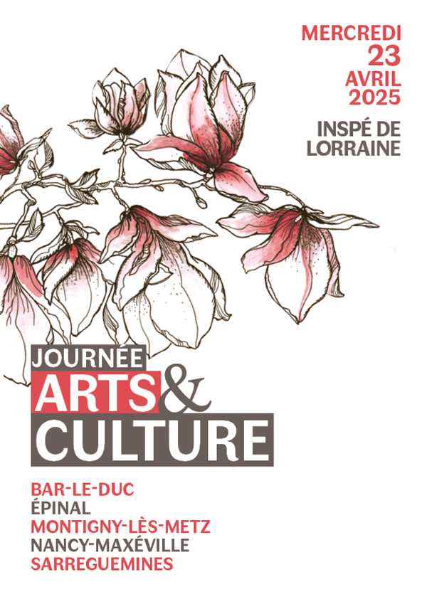 La Journée Arts & Culture dans l'Enseignement Supérieur de l'INSPÉ de Lorraine se déroulera mercredi 23 avril 2025 sur nos 5 campus de formation, c'est une journée banalisée sans cours afin de permettre à toute la communauté (étudiants et personnels) de participer à au moins un atelier !