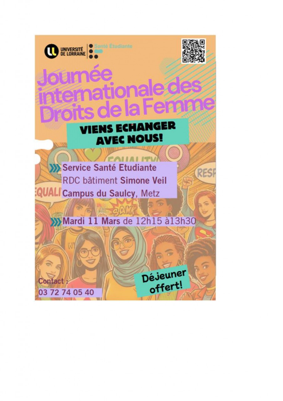 L’équipe sociale du Service de Santé Etudiante Lorraine Nord a proposé une action à l’occasion de la Journée Internationale des Droits des Femmes du 8 mars 2025.