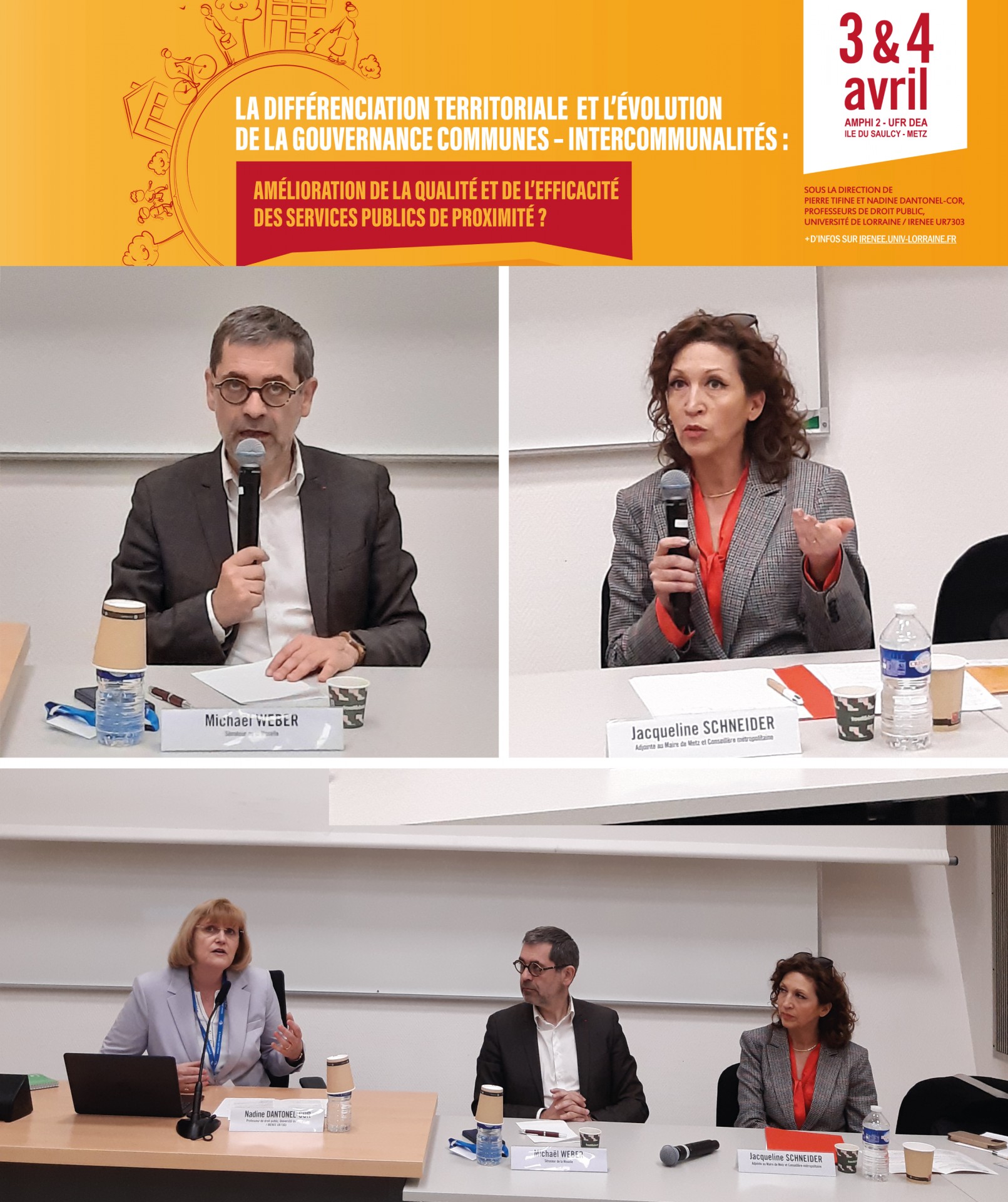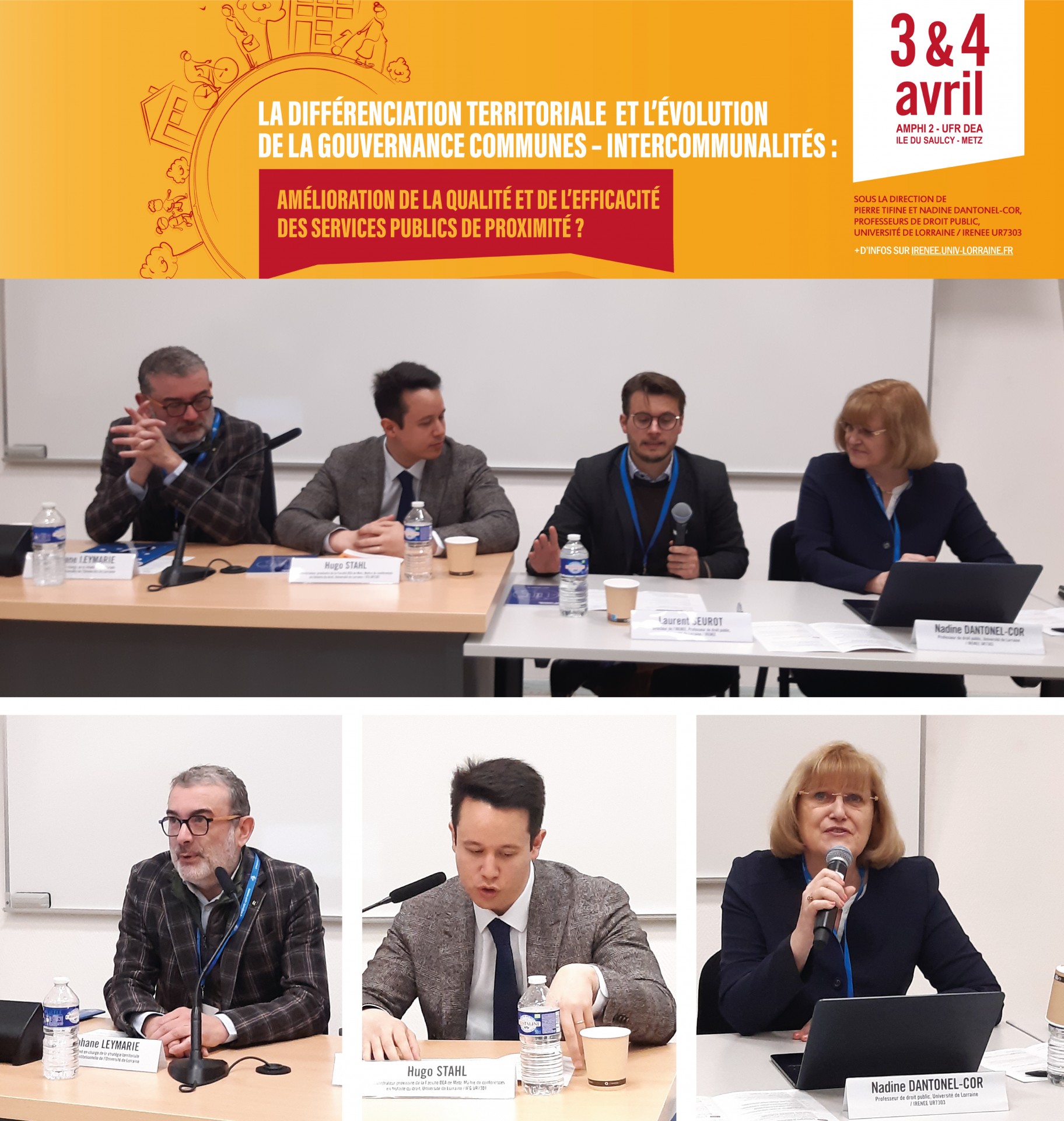 Allocutions d'ouverture avec M. Stéphane LEYMARIE, Vice-Président en charge de la stratégie territoriale et de la vie institutionnelle de l’Université de Lorraine ; M. Hugo STAHL, Administrateur provisoire de la Faculté DEA de Metz, Maître de conférences en histoire du droit (Université de Lorraine / IFG UR7301) ; M. Laurent SEUROT, Directeur de l’IRENEE et Mme Nadine DANTONEL-COR, Professeurs de droit public (Université de Lorraine / IRENEE UR7303).