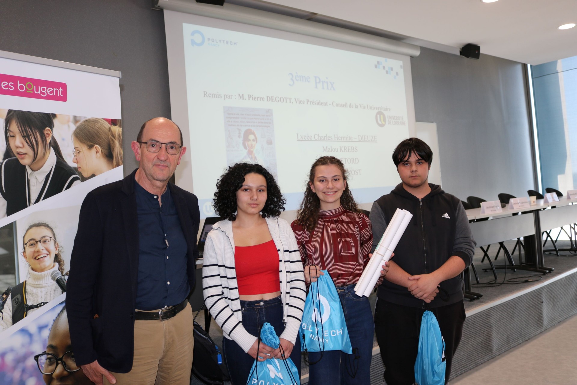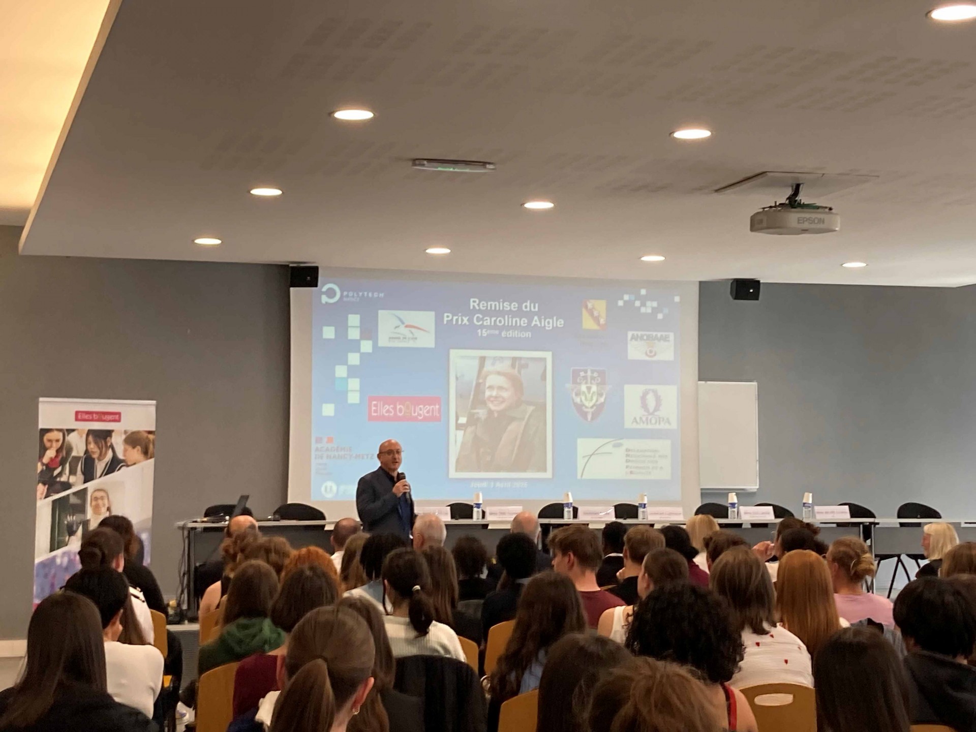 [Ambition féminine] La remise des Prix du Concours Caroline Aigle* a eu lieu le Jeudi 3 avril 2025 à Polytech Nancy en présence des élèves et enseignants des lycées participants de Meurthe-et-Moselle, Moselle et Meuse, et des instances organisatrices.