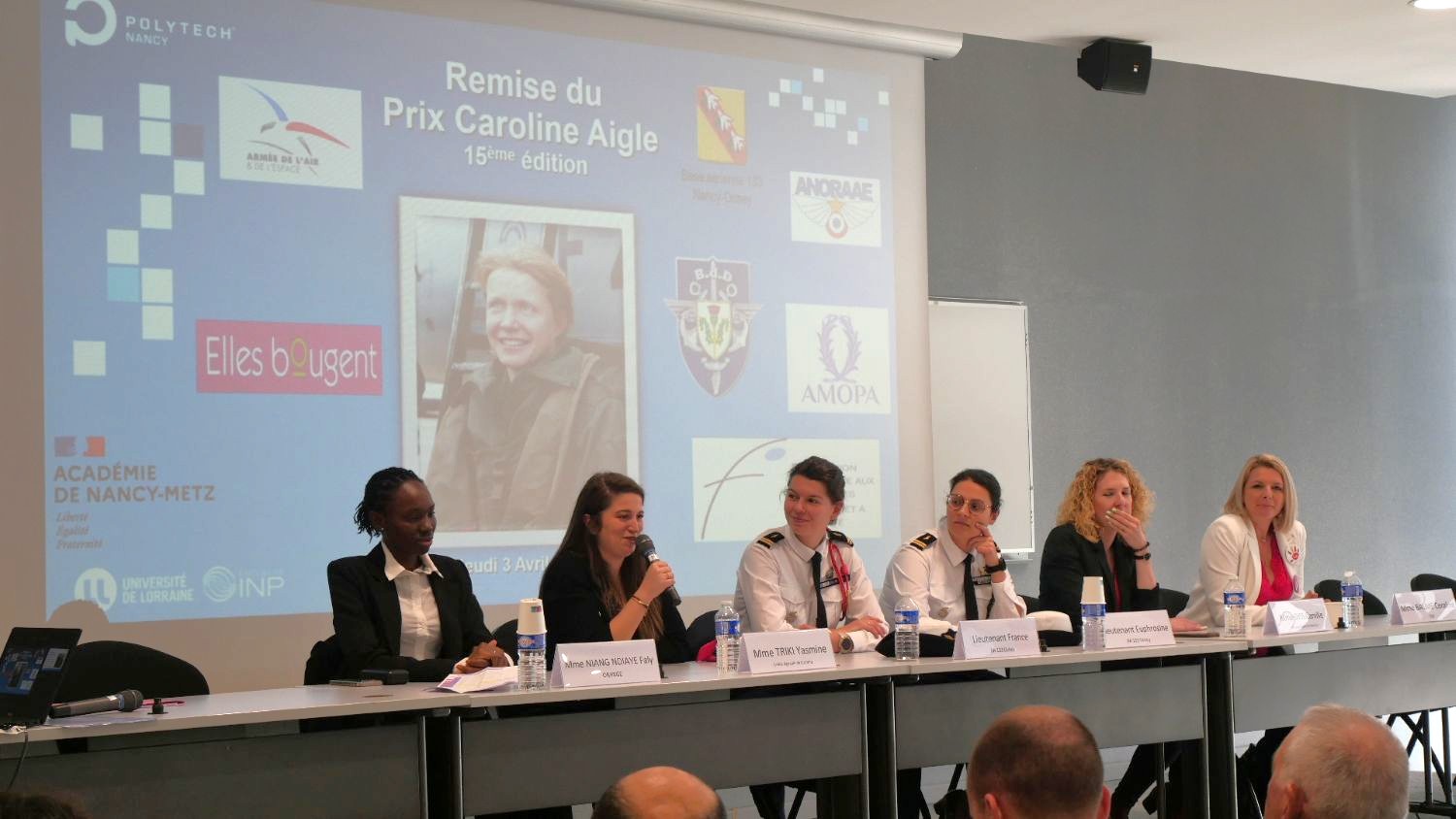* Pour la 15e année, le Prix Caroline Aigle est organisé par Polytech Nancy, la mission Egalité Filles-Garçons du Rectorat de Nancy-Metz, la Délégation Régionale aux Droits des Femmes et à l’Egalité, l’Association Elles Bougent, la base aérienne de Nancy-Ochey, l’Académie Lorraine des Sciences, l’Association Femmes et Sciences, l’Association des Membres de l’Ordre des Palmes Académiques et l’Association Nationale des Officiers de Réserve de l’Armée de l’Air et de l’Espace.