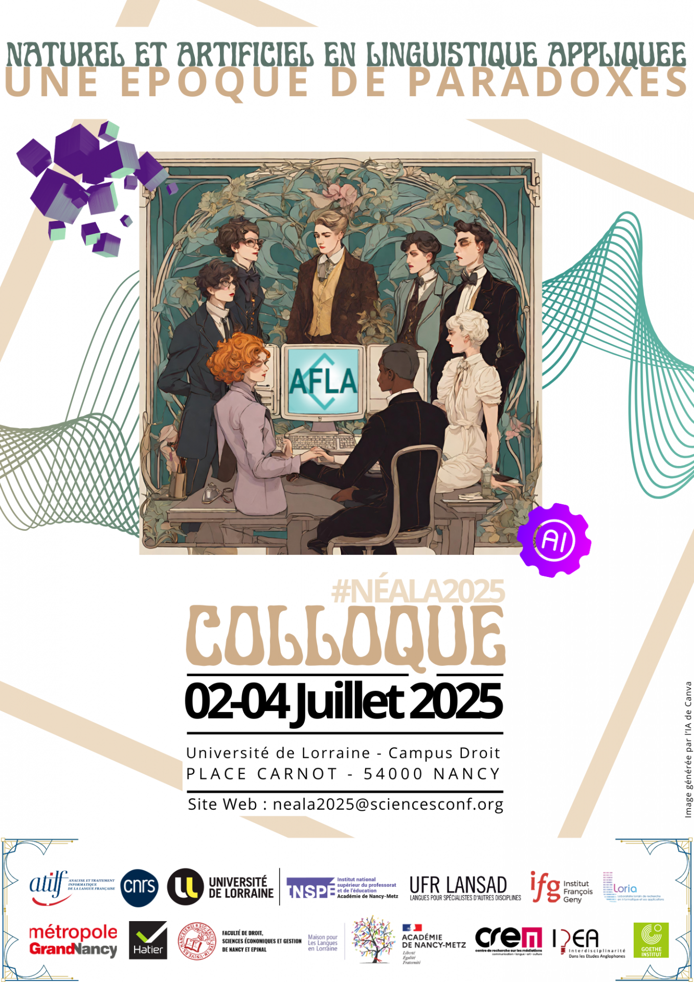 Du 2 au 4 juillet 2025, le laboratoire ATILF (CNRS/Université de Lorraine) accueillera à la Faculté de Droit à Nancy le colloque NéALA2025. Cet événement international, porté par l'Association Française de Linguistique Appliquée (AFLA), réunira plus d’une centaine de chercheurs ou chercheuses, enseignants ou enseignantes, professionnels ou professionnelles et acteurs ou actrices de l'innovation pour explorer les interactions entre le naturel et l'artificiel dans le domaine de la linguistique appliquée. Ce colloque revêt une dimension symbolique, car en 1964, un premier événement marquant a posé les bases de l'institutionnalisation de la linguistique appliquée, conduisant à la création conjointe des associations française (AFLA) et internationale (AILA) dans ce domaine.
