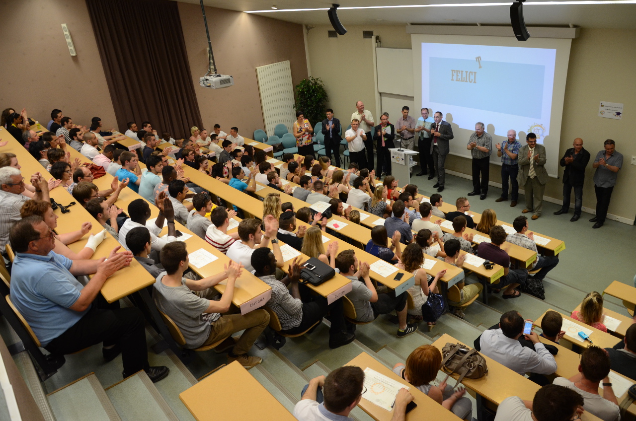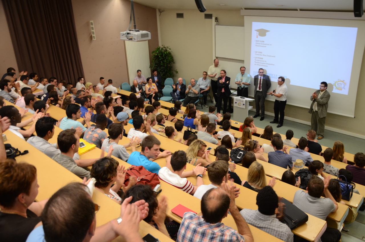 Le Vendredi 5 Juin 2015, les étudiants de l’IUT de Thionville-Yutz, promotion 2013/2014, étaient mis à l’honneur lors de la traditionnelle cérémonie de remise des diplômes parrainée, cette année, par Monsieur Jean-Pierre George, Responsable de la politique industrielle du CNPE de Cattenom.