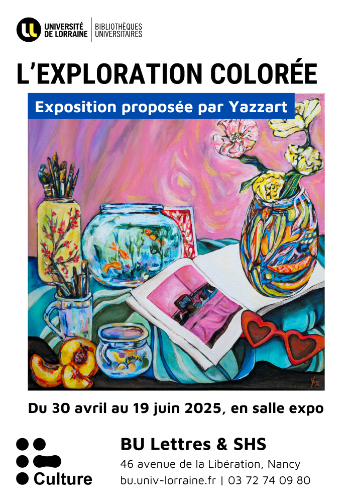 La BU Lettres et SHS accueillera du 30 avril au 19 juin une exposition de peintures qui vous invitera à plonger dans un univers où la couleur règne en maître.