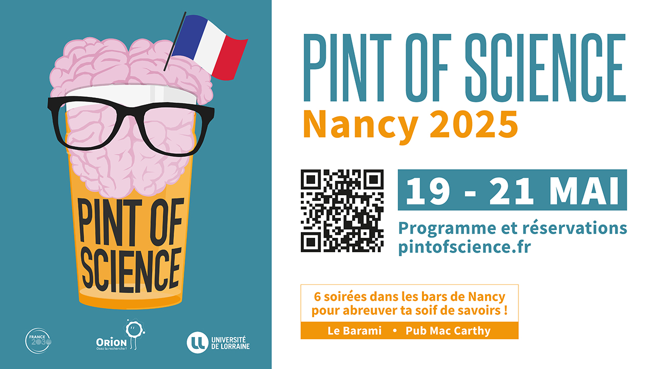 Du 19 au 21 mai, la science quitte les laboratoires pour s’inviter dans les bars nancéiens, à l’occasion du Pint of Science. Pour cette édition 2025, le programme ORION renouvelle son soutien et accompagne activement l’événement.