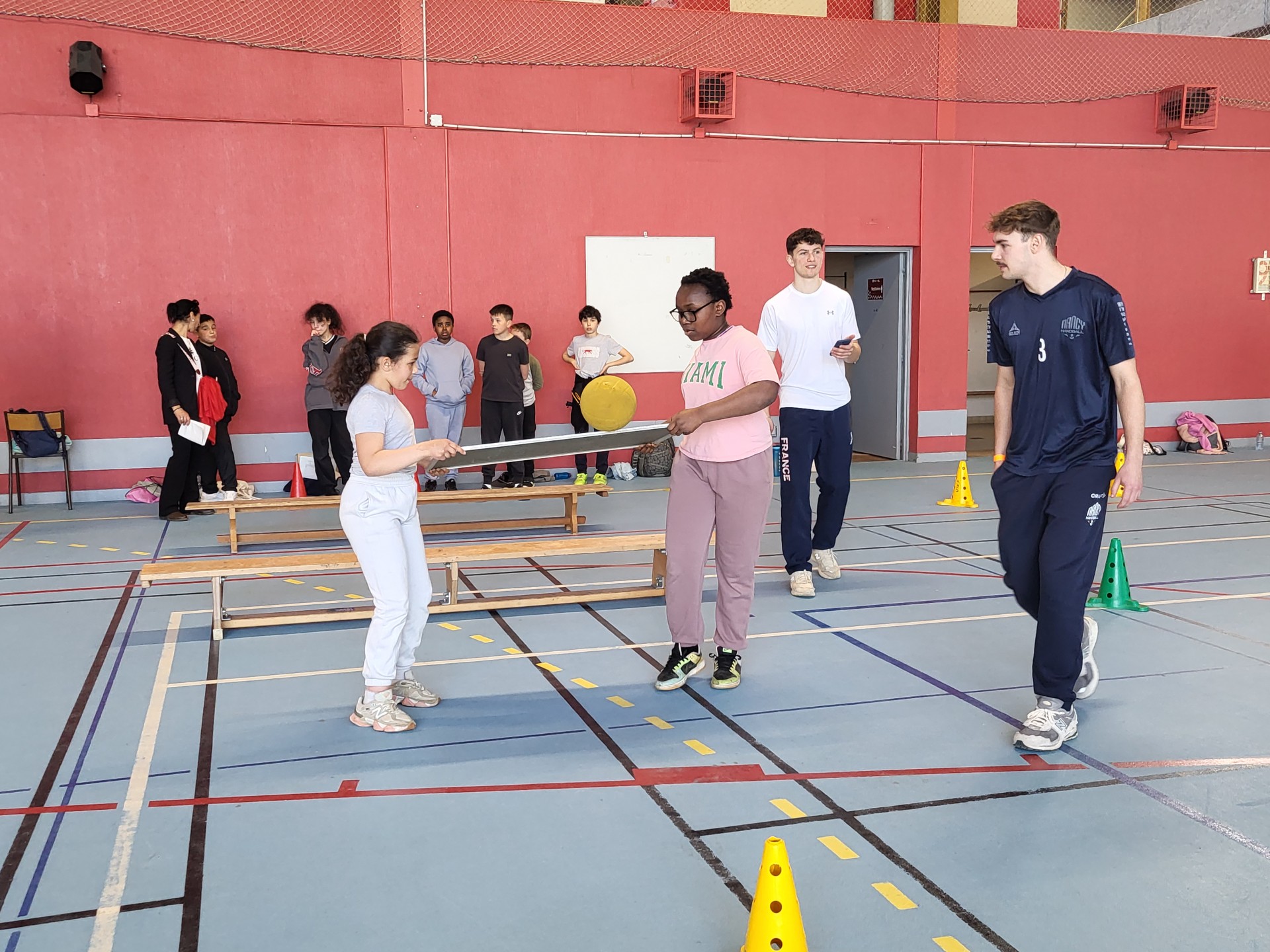 Encadrés par les étudiants de 3ᵉ année du parcours Éducation et Motricité, les élèves des écoles du Château, des Aiguillettes et du collège Callot ont pris part à une série d’ateliers variés, conçus pour éveiller leur curiosité, favoriser l’esprit d’équipe et les sensibiliser à la pratique handisport.