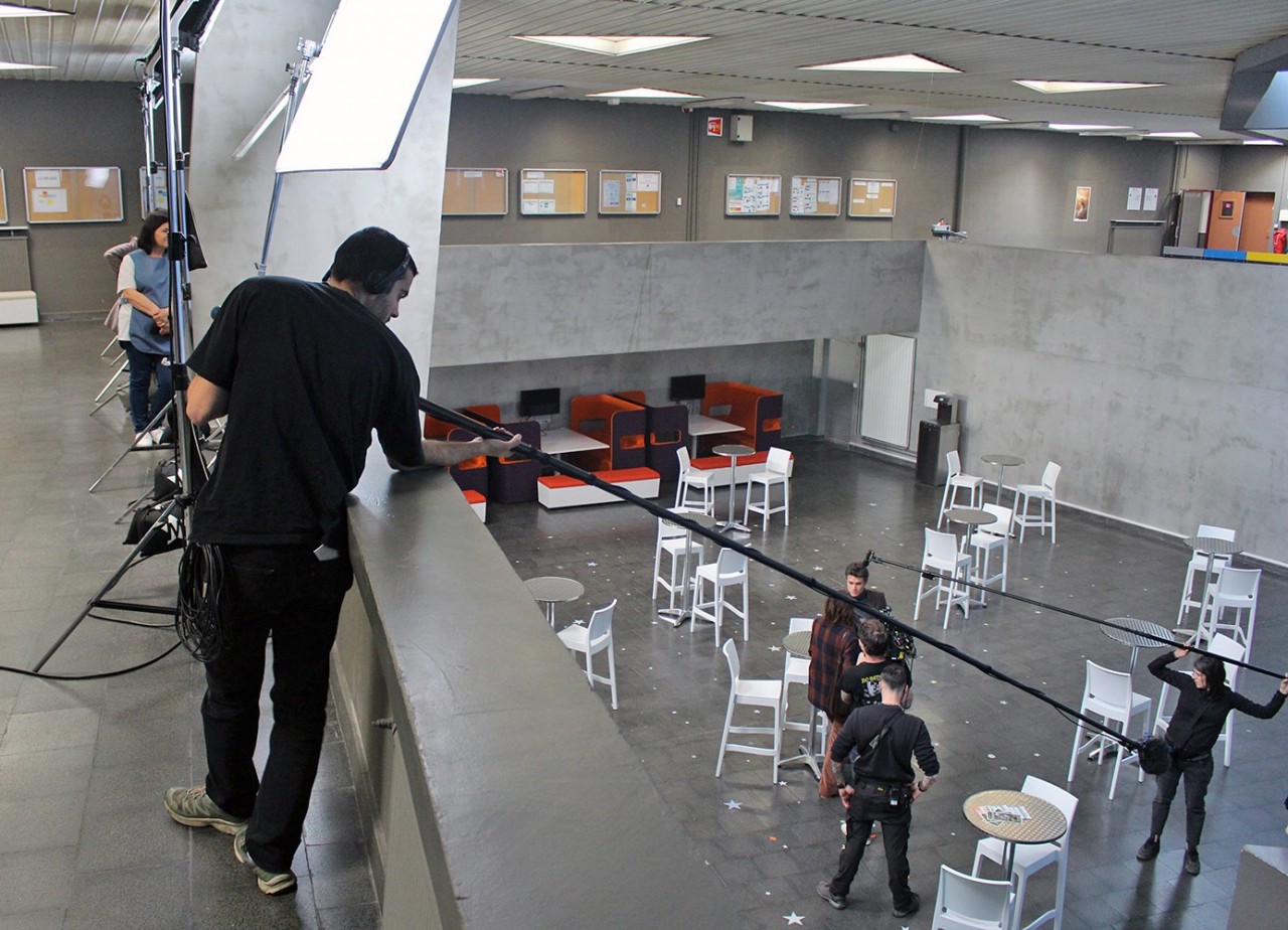 Le tournage s’est déroulé sur une journée entière, de 7h30 à 20h, dans différents lieux de la faculté, notamment aux abords du bâtiment Victor Grignard, ses couloirs et l’Atrium.