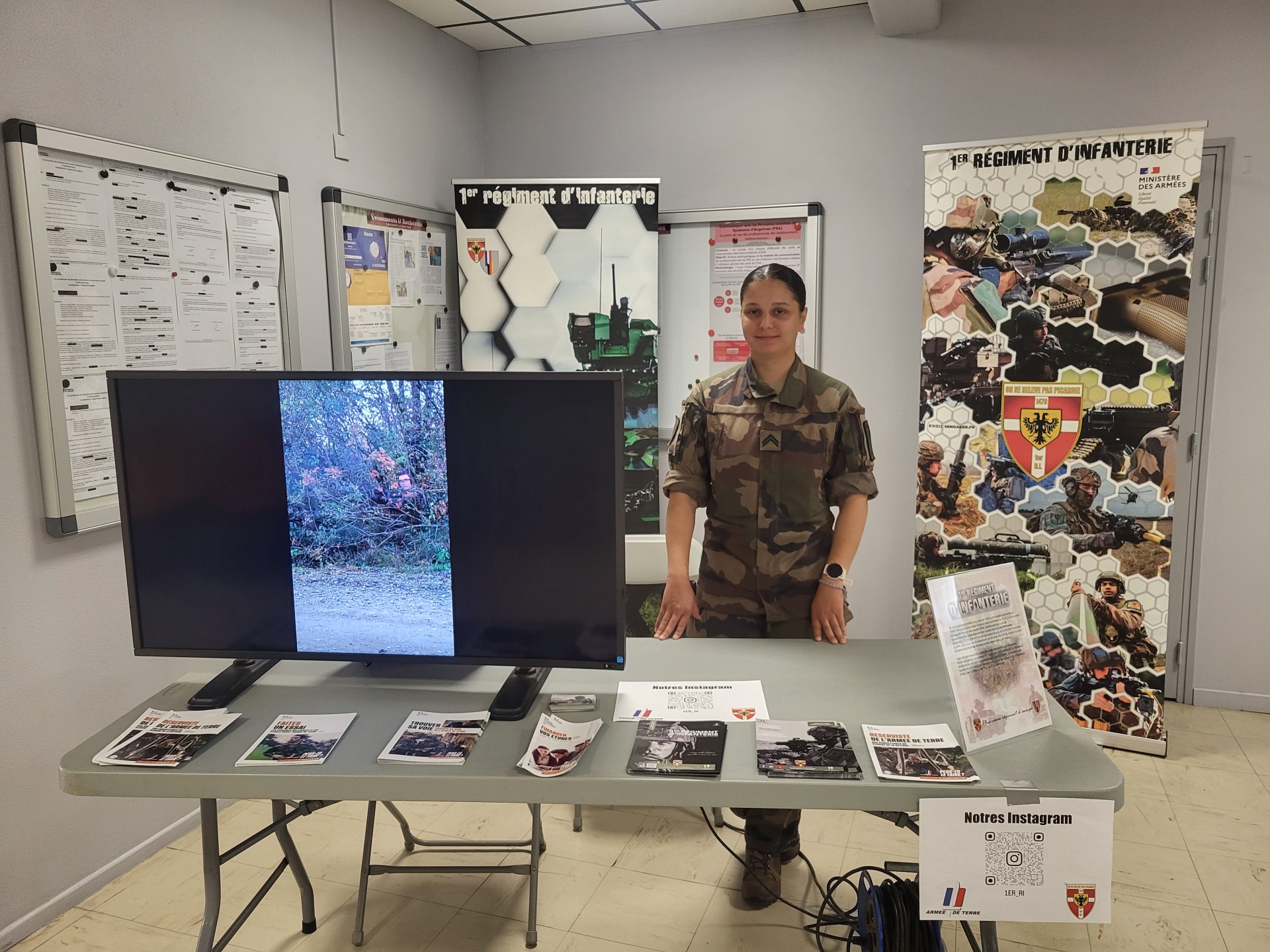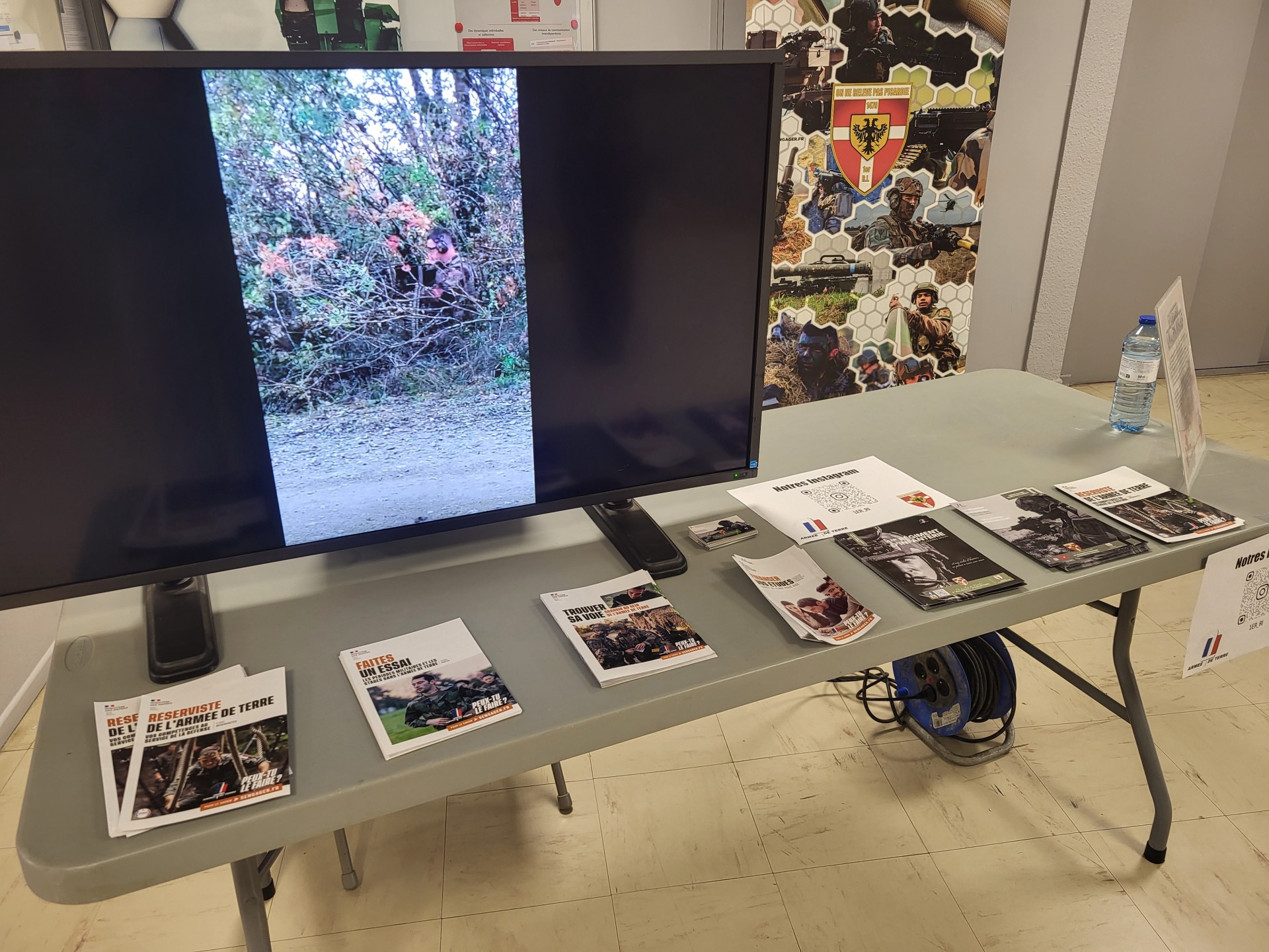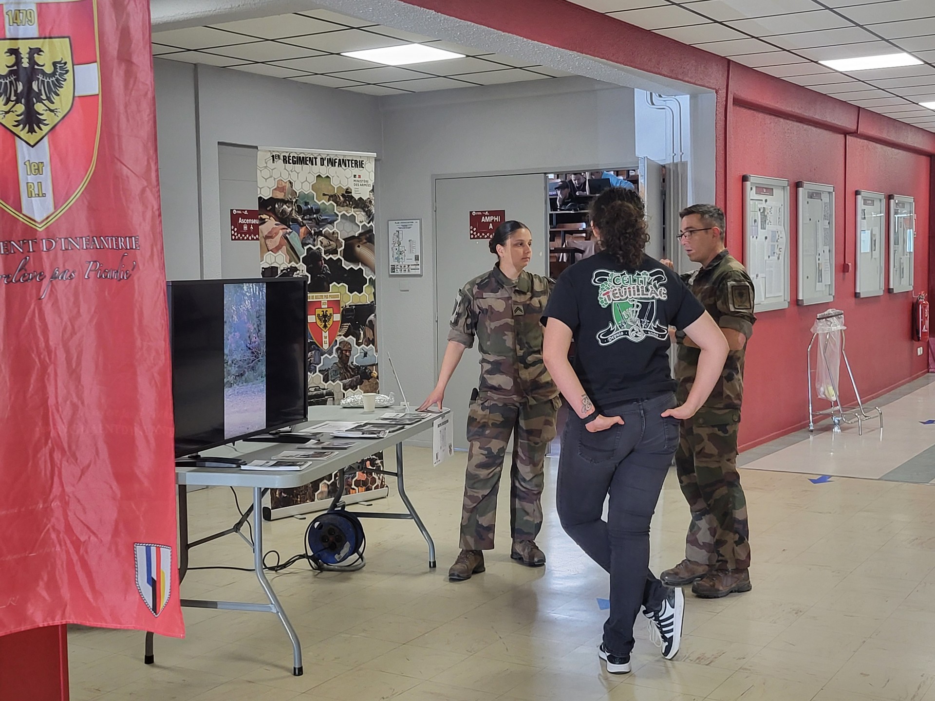 De 10h à 16h, quatre réservistes (dont deux étudiants actuellement inscrits à l’UFR STAPS et une ancienne étudiante), accompagnés d’un militaire d’active, sont venus à la rencontre des étudiants. Des stands ont été installés dans le hall principal et au foyer étudiant, avec brochures, discussions ouvertes et ambiance conviviale. L’objectif était simple : informer les étudiants sur le fonctionnement du 1er RI, sur le rôle des réservistes, et sur la manière de s’engager. Une présentation plus complète a également été proposée à 13h30 aux étudiants de première année.