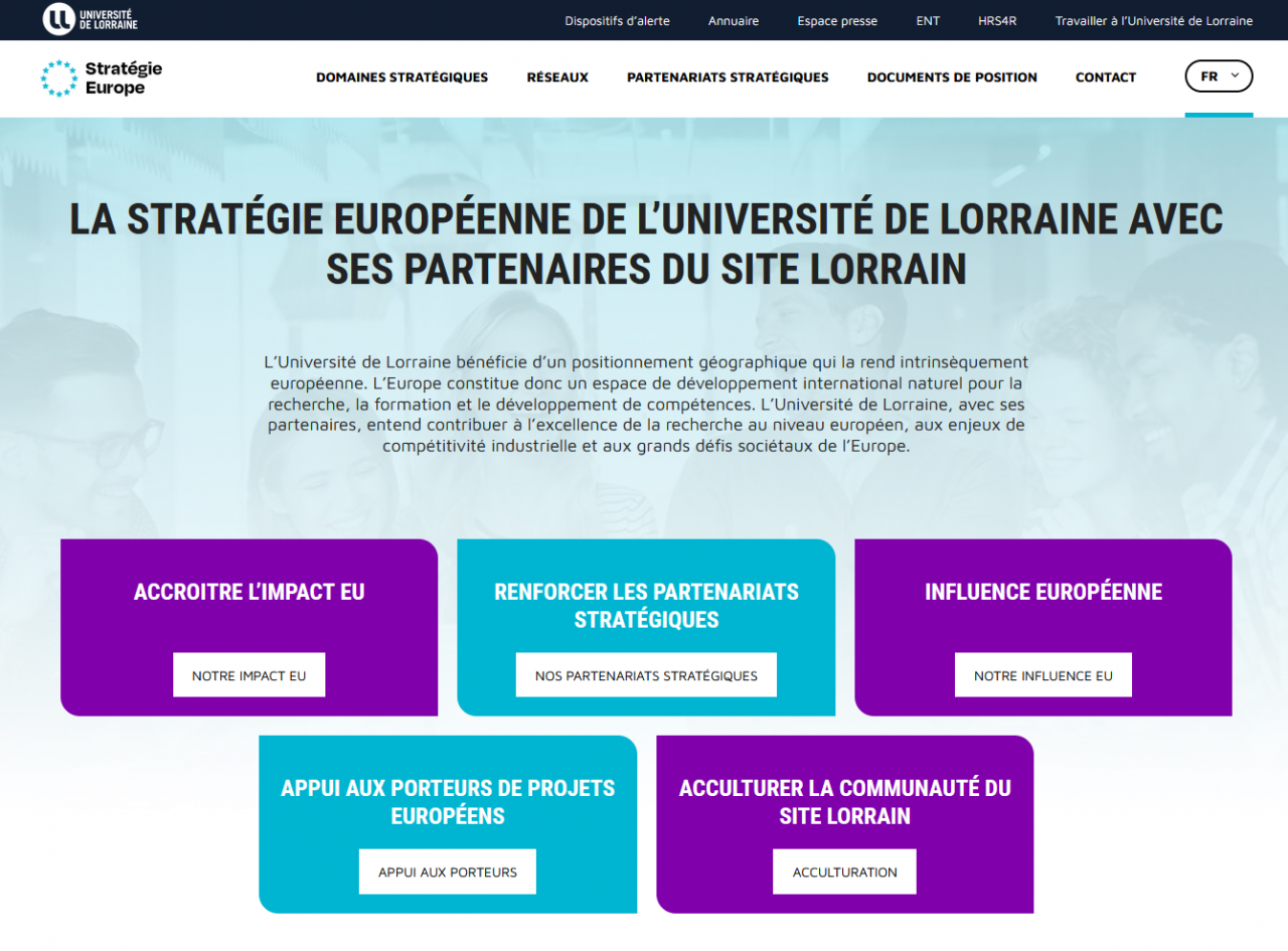 En avril dernier, l’Université de Lorraine a mis en ligne un site web dédié à notre stratégie européenne. Conçu pour rendre visible le site lorrain à l’échelle européenne et internationale, il met en avant, dans cette première version, les premières informations clés en lien notamment avec le projet REIL.