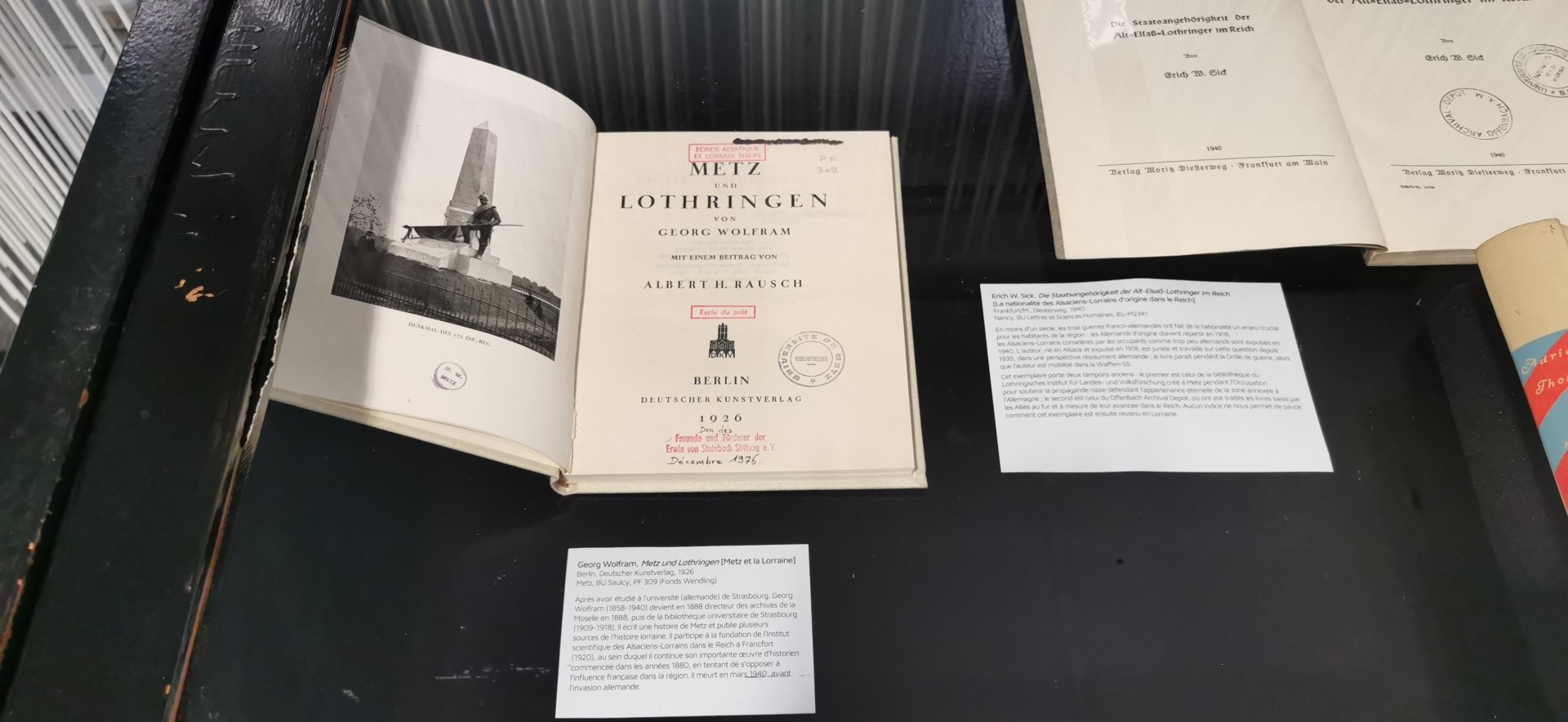 L'exposition a été créée à partir du fonds Edgar Wendling, consacré à l'histoire et à la culture de la Moselle entre 1870 et la fin des années 1970, et inclut aussi deux cartes nazies confiées par le LOTERR.
