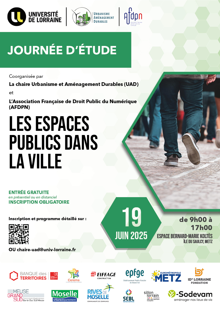 La chaire Urbanisme et Aménagement Durables coorganise, avec l'Association Française de Droit Public du Numérique, une journée d'étude sur le thème "Les espaces publics dans la ville".