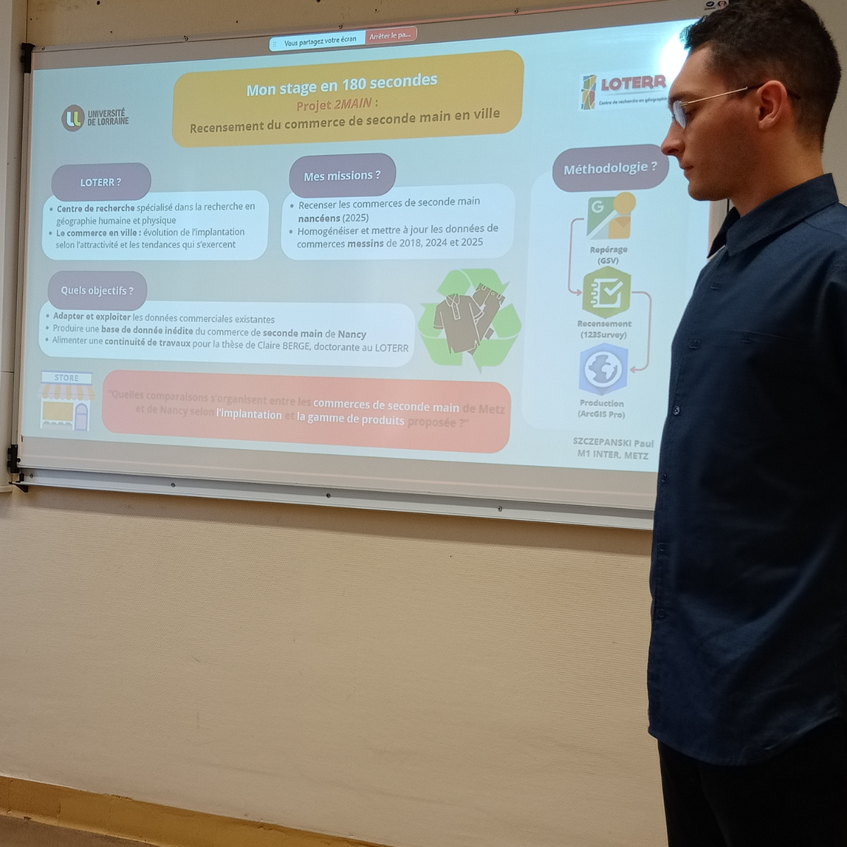 Top chrono pour les étudiants en Master Urbanisme et Aménagement parcours Intelligence Territoriale qui ont pu présenter leurs missions de stage en 3 minutes devant leurs enseignants, ce jeudi 22 mai.