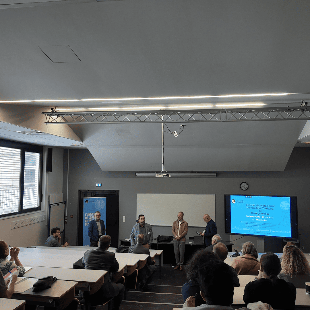 Mais aussi de représentant·es des directions centrales de l’Université de Lorraine (DVUC, DDOC et CROUS) et de représentant·es d’institutions politique, économique, de l’emploi et culturelle du territoire (CASC, Région Grand Est, France travail, Mission Locale, Holosolis, Espace entreprise, Association le filon, La grande aux paysages, Université populaire de Sarreguemines Confluence, …