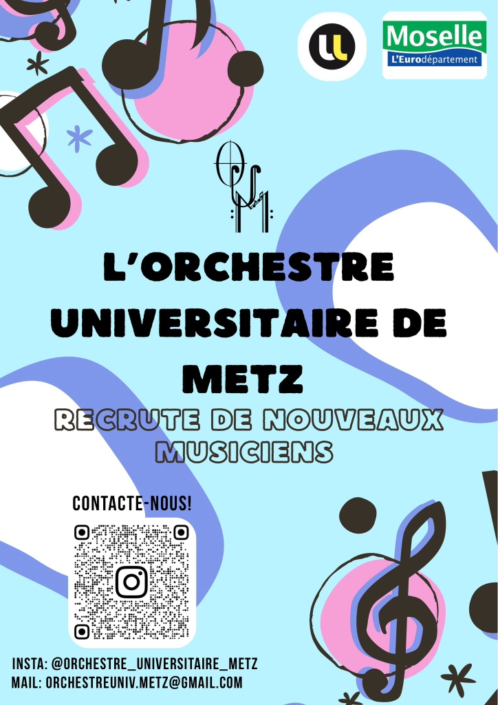 Vous êtes musicien·ne, étudiant·e, amateur·rice ou semi-professionnel·le ? Vous aimez jouer en orchestre, relever des défis artistiques et partager des moments forts sur scène ? L’Orchestre Universitaire de Metz ouvre ses portes pour une nouvelle saison musicale… et cherche de nouveaux talents !