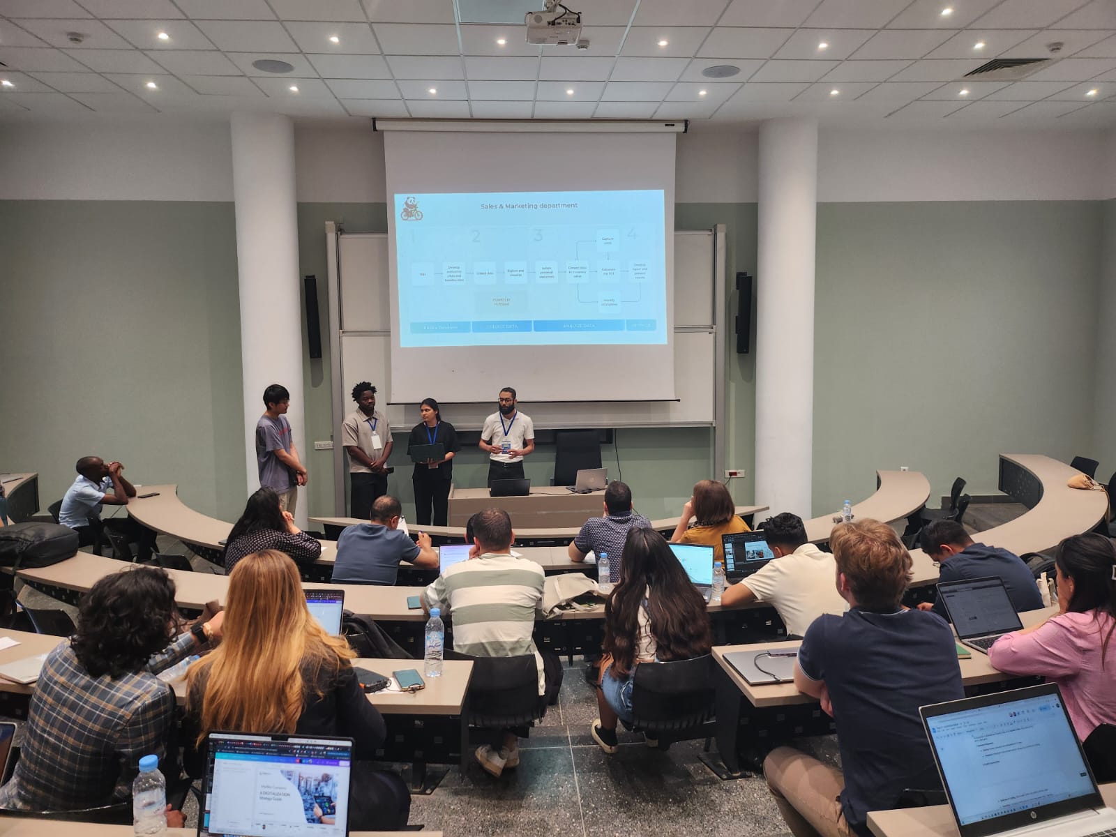 Dès le premier jour, les doctorants ont collaboré sur la modélisation d’une PME, favorisant une approche dynamique et collective. Ce travail en groupe a nourri une réflexion approfondie sur les enjeux de la transformation digitale des entreprises.