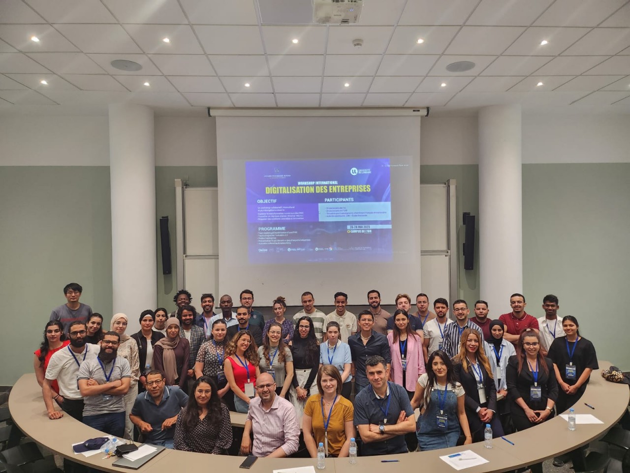 Du 26 au 28 mai 2025, l'Université Internationale de Rabat a accueilli 19 doctorant·es de l'Université de Lorraine lors du Workshop "Digitalisation des entreprises", financé par le programme ORION. Pendant trois jours, chercheur·es et doctorant·es ont travaillé en équipes mixtes franco-marocaines pour proposer des solutions concrètes pour la digitalisation des PME.