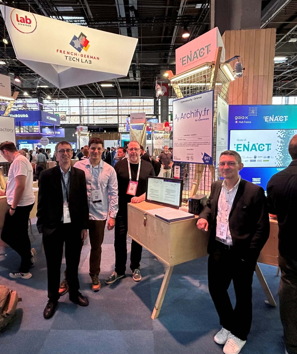 Installé au cœur du French-German Tech Lab, aux côtés du projet Gaia X, le stand ENACT a accueilli sept startups* d’Alsace et de Lorraine, porteuses de projets innovants qui répondent aux enjeux concrets de leurs secteurs : Cyber4care, DeepPhy, Public IA, iGlobe Scientific, NEBULA, NOVIGA et Scialytics. Leur présence a renforcé leur visibilité et ouvert de nouvelles opportunités de collaboration.