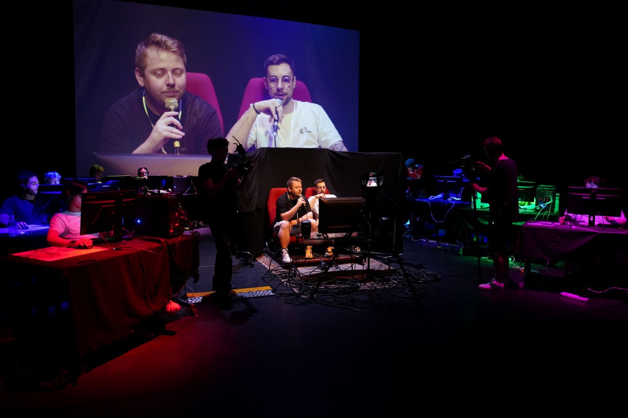 Toute l’année, la e.mde organise des évènements sur son discord et des ateliers à distance [insert lien discord e.mde]. Ce samedi 14 juin était une belle conclusion de l’année universitaire pour la e.mde et une occasion réussie de créer un évènement d’ampleur en présentiel sur des thématiques qui lui sont chères : l'e-sport, le jeu et les arts numériques.