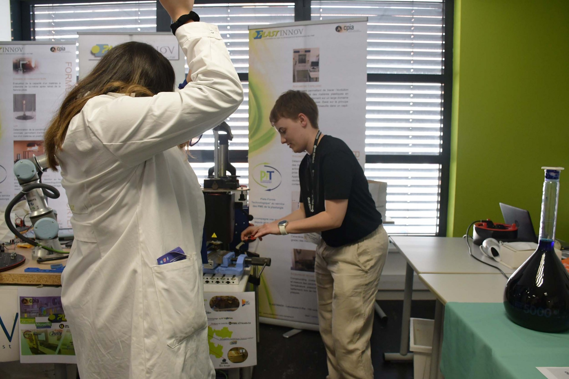 La matinée et le début d’après-midi ont été consacrés à une Journée Portes Ouvertes à destination du grand public. Des ateliers animés par les étudiants et les équipes pédagogiques ont permis de faire découvrir les formations proposées, les activités de recherche, ainsi que sa plateforme de transfert de technologie Plastinnov.