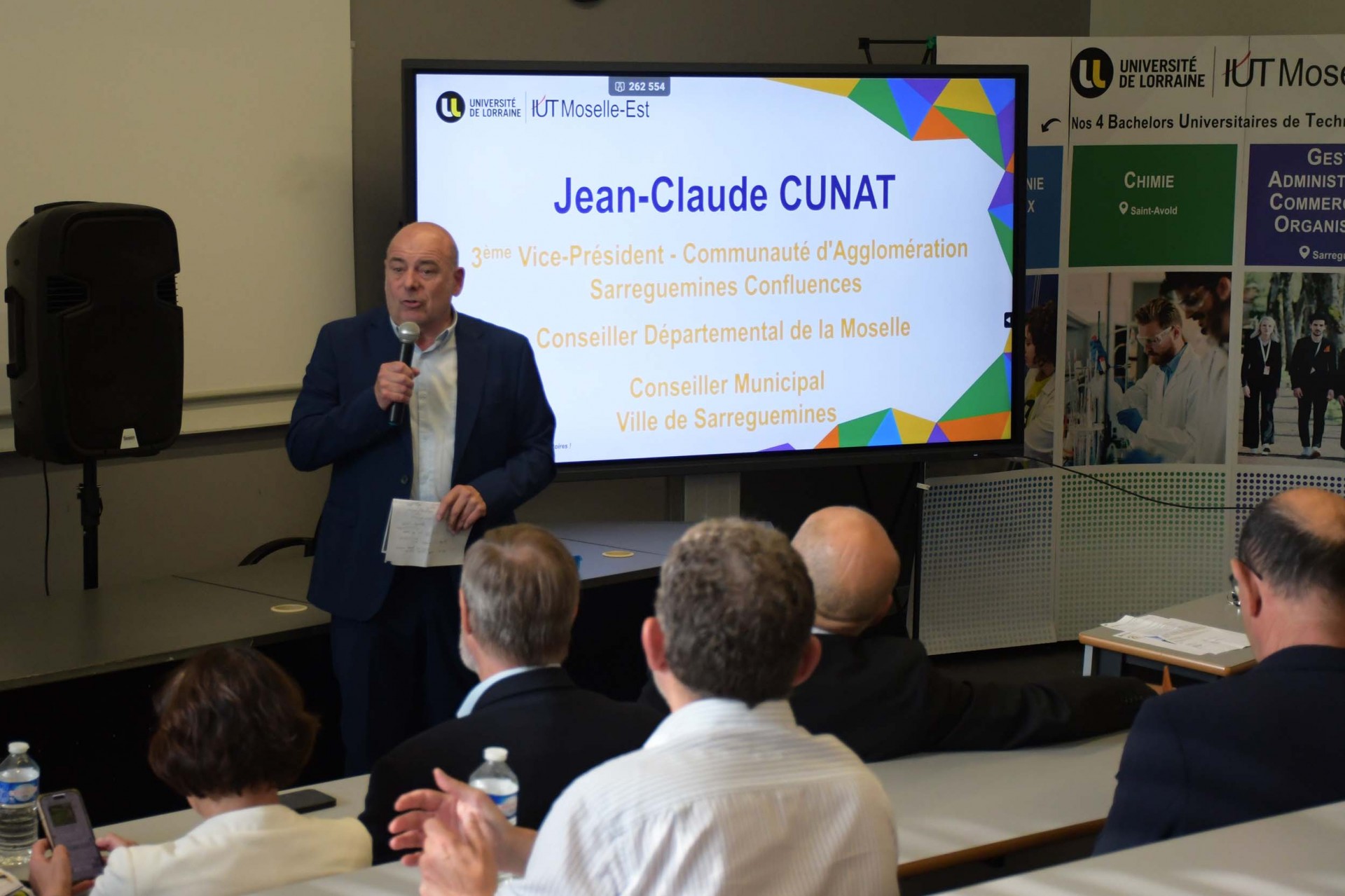 Discours de Jean-Claude Cunat, 3ème Vice-Président à la Communauté d'Agglomération Sarreguemines Confluences, Conseiller Départemental de la Moselle, Conseiller Municipal à la ville de Sarreguemines, Vice-Président du Conseil d'IUT