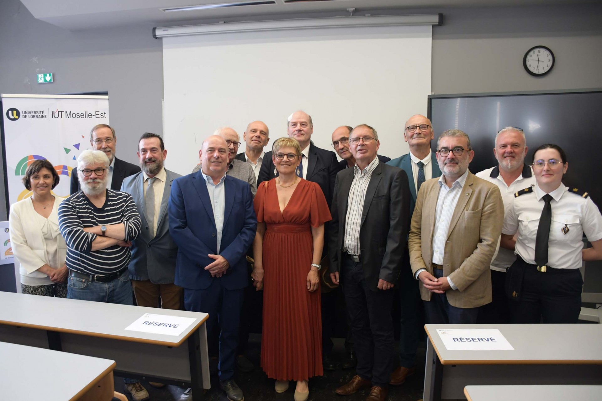 Photo de groupe avec l'Université de Lorraine, les élus territoriaux, la Direction de l'IUT de Moselle-Est