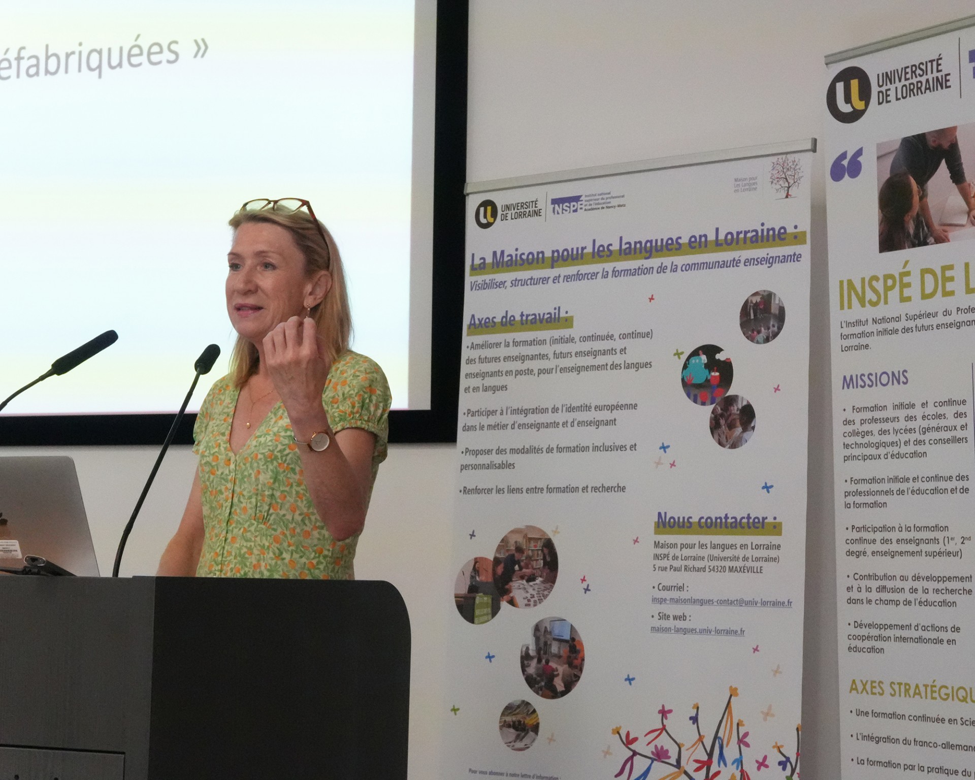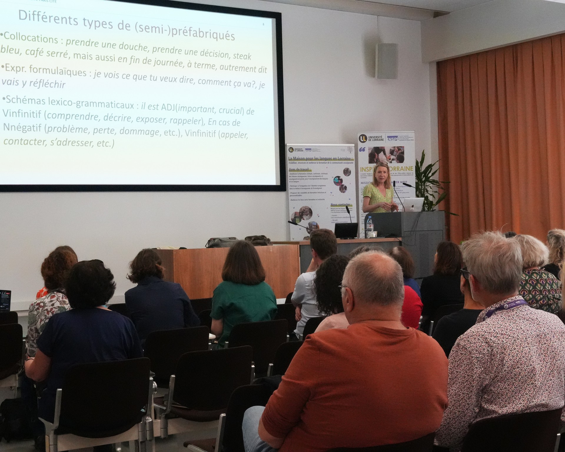 - une conférence inaugurale de Natalie Kübler (Université Paris Cité) expliquant pourquoi apprendre une langue, c’est apprendre des structures plus ou moins figées et préférées – bientôt disponible sur la plateforme « Entendu » de l’INSPÉ ;