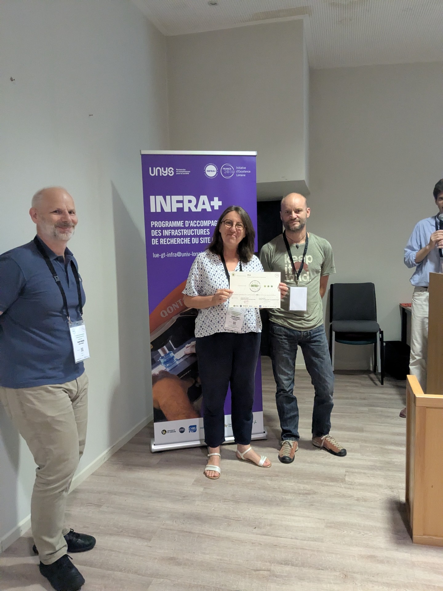 Benoît GRASSER, vice-président adjoint à la politique scientifique et directeur exécutif de l’ISITE Lorraine Université d’Excellence a ouvert la journée par un mot de bienvenue suivi d’une présentation sur l’évolution du projet de site et l’importance des infrastructures de recherche dans la réussite des Programmes Interdisciplinaires, IMPACT et Centres de Recherche et d’Expertise Transversale (CRET). Il a ensuite remis les diplômes de labélisation INFRA+ à la plateforme GP4wood et de re-labélisation aux plateformes PEA et GISFI. Le label INFRA+ atteste de leur engagement et leur efficacité dans la démarche qualité, contribuant ainsi à la qualité de la recherche du site lorrain.