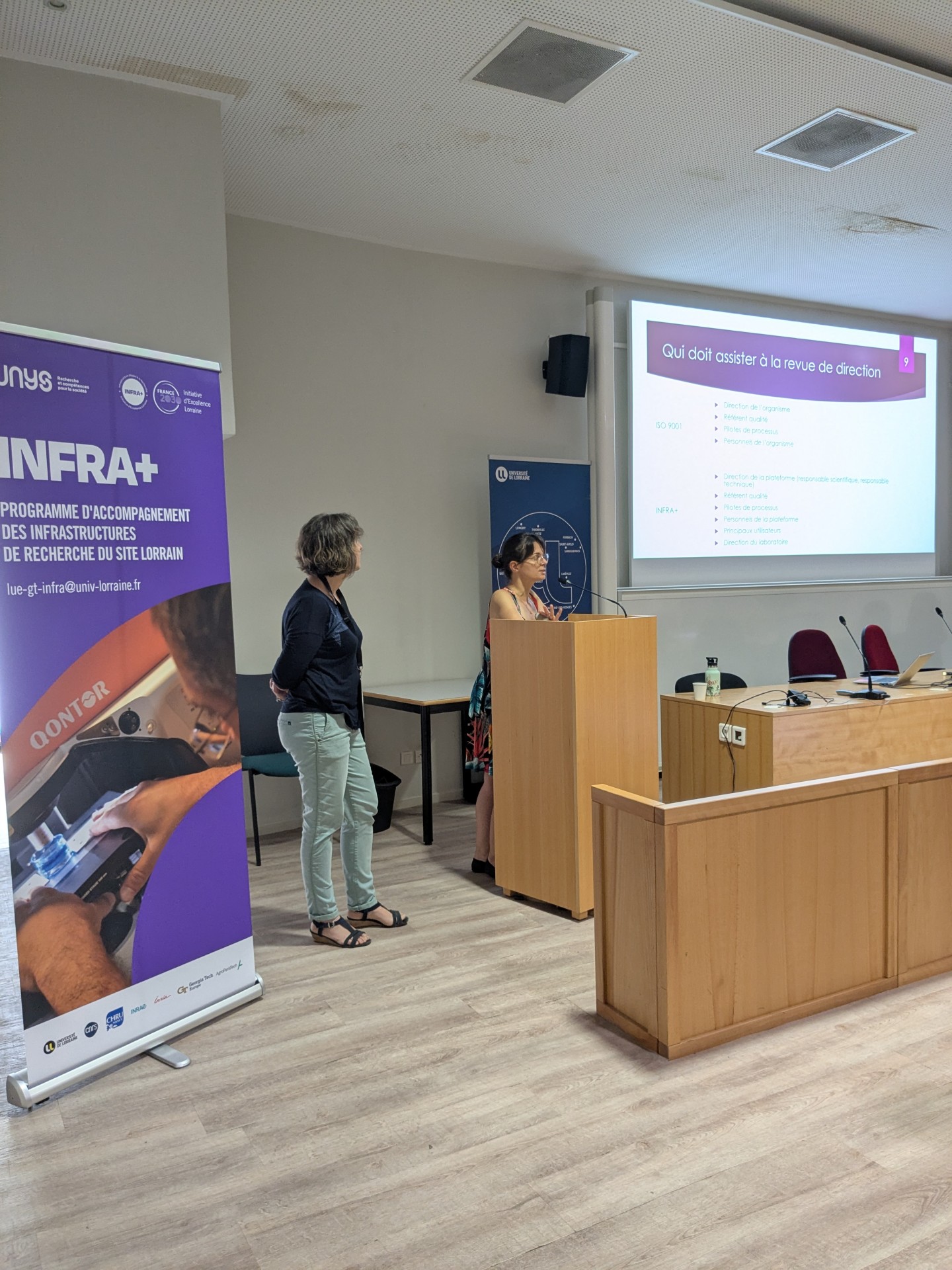 En début d’après-midi, Émilie EL OUDGHIRI, chargée d’études INFRA+, et Claire DESSALLE, du CIC-IT, ont poursuivi par une intervention sur l’exercice d’une revue de direction annuelle que les plateformes doivent assurer. Elles ont mis l’accent sur le rôle central de cet incontournable de la démarche qualité dans la définition et l’adaptation de la trajectoire des infrastructures de recherche, et dans les relations avec leurs usagers.