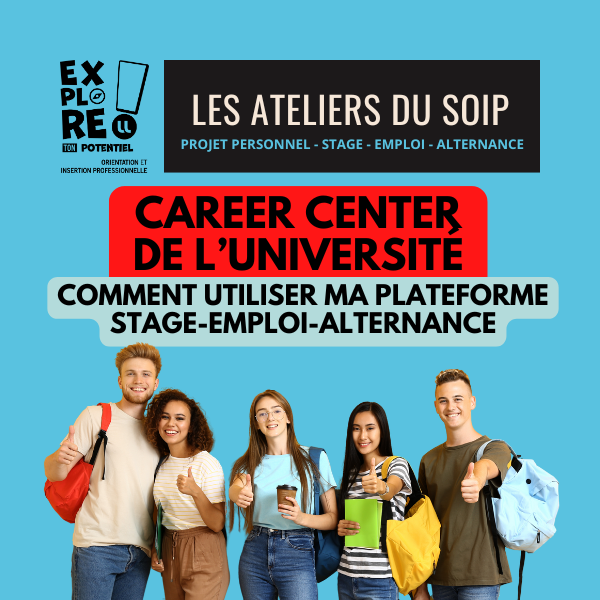 Le Career Center est LA plateforme de l'université de Lorraine dédiée à l'insertion professionnelle de ses étudiants et l'objectif de cet atelier, proposé à distance, est d'en explorer les fonctionnalités et de vous initier à son fonctionnement.